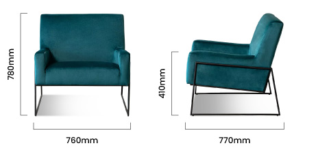 With its contemporary design, this armchair emphasises laid-back comfort and clean lines for a minimalist modern look. High-quality velvet upholstery adds a luxurious finish, with powder-coated steel framing.