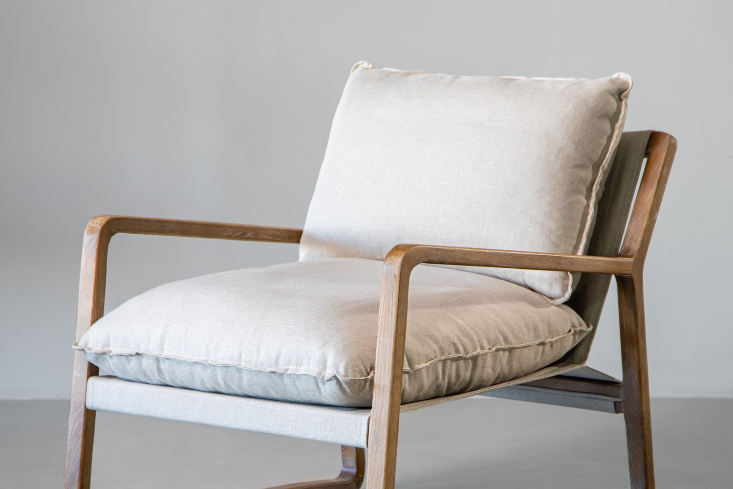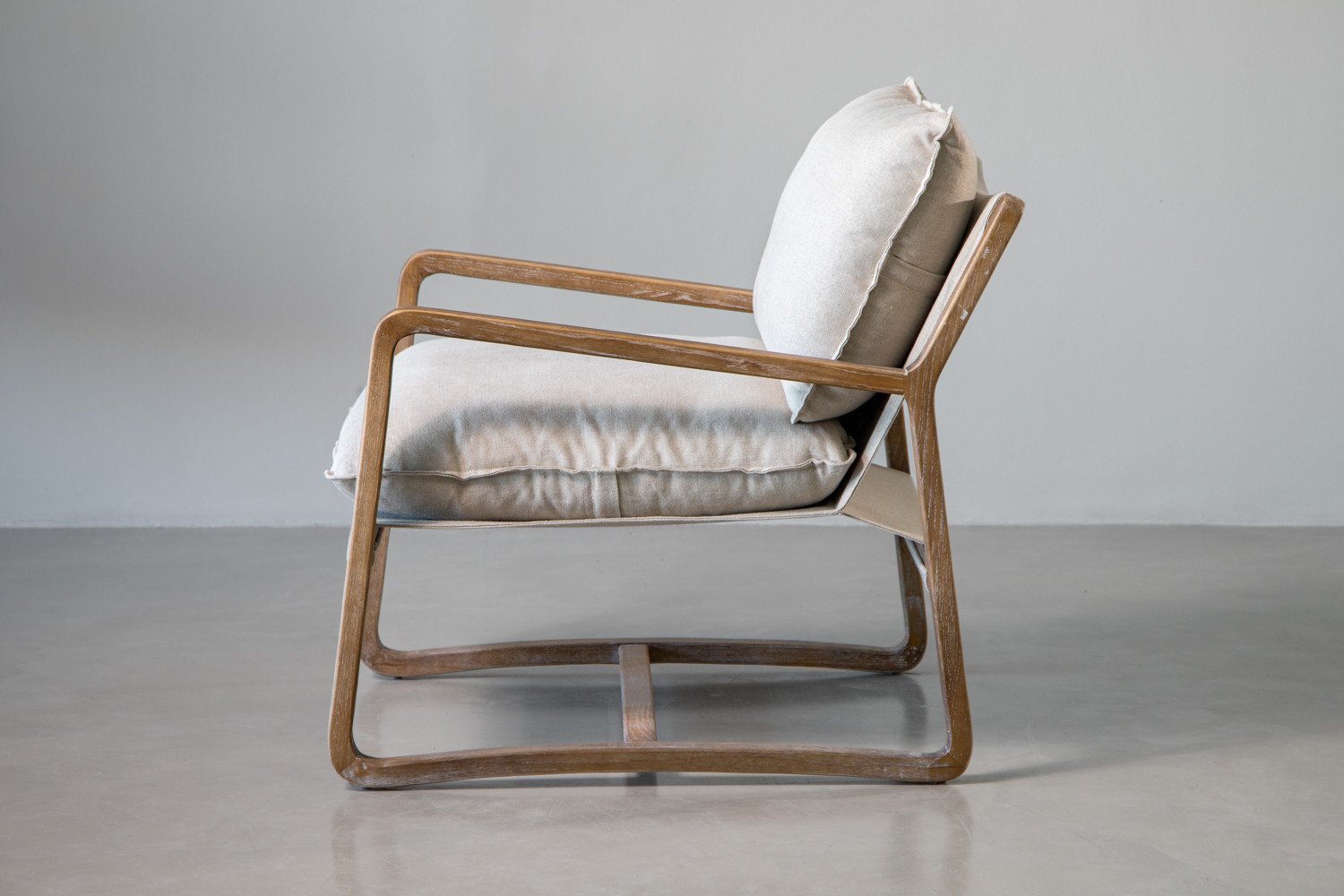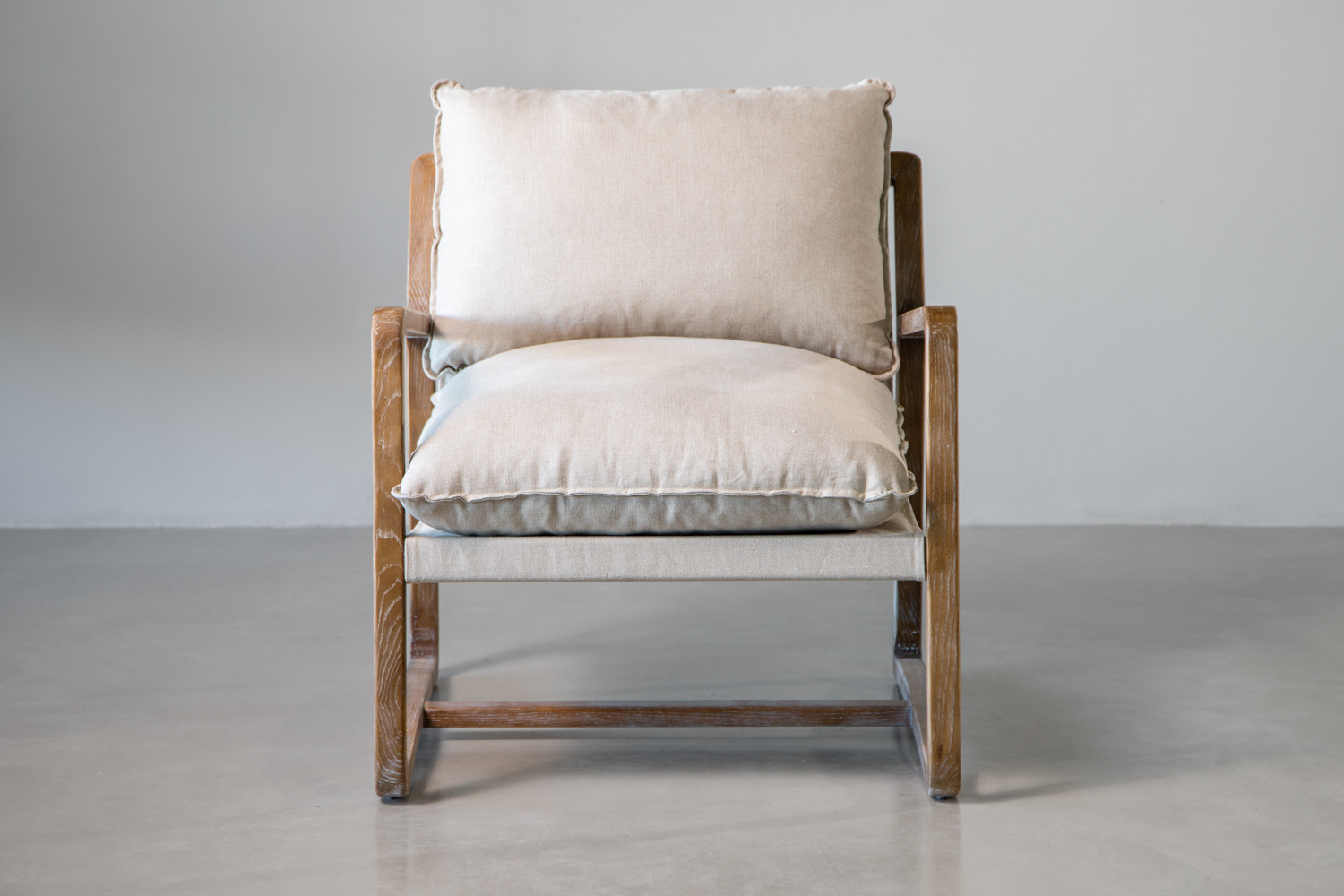 The Clyde Armchair is a timeless classic that will add sophistication and elegance to your living space. With its brushed Hackberry wood frame, natural linen upholstery and plush removeable cushions the Clyde blends inviting comfort and laid-back class.