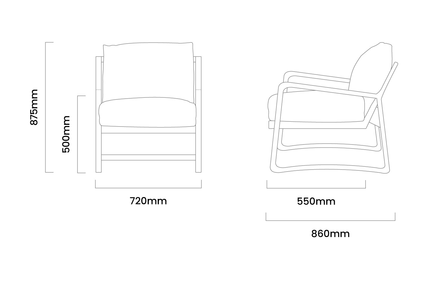720mm (L) x 860mm (W) x 875mm (H) | Seat Height - 500mm (H) | Seat Depth - 550mm