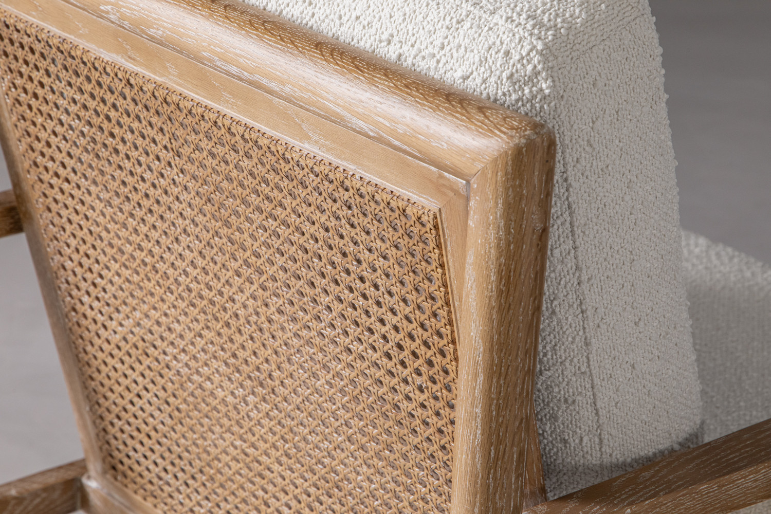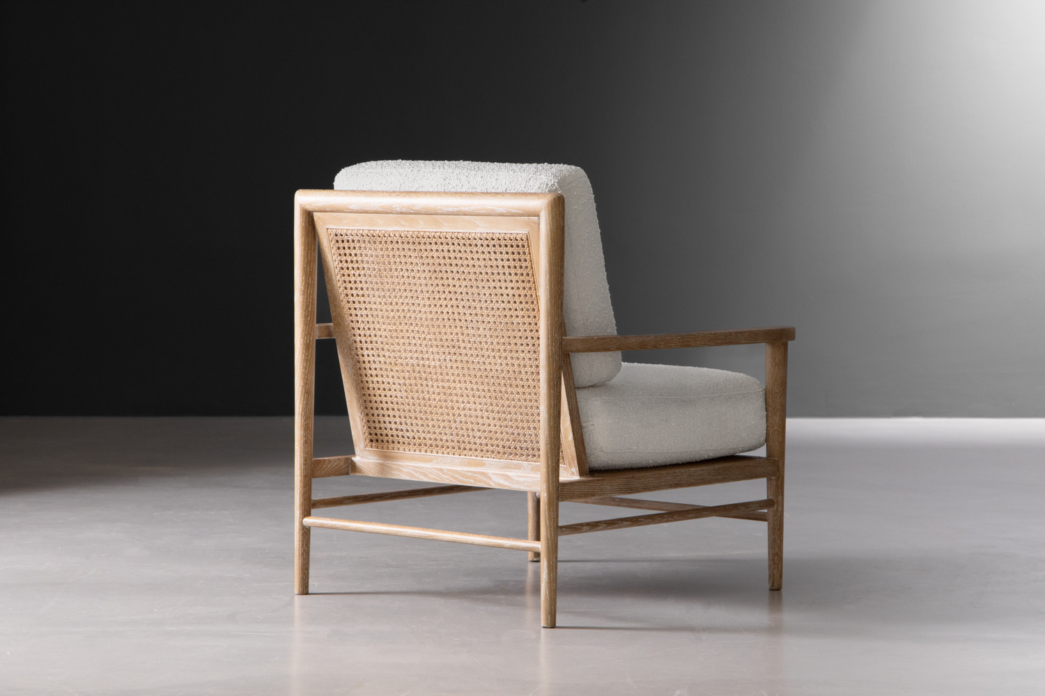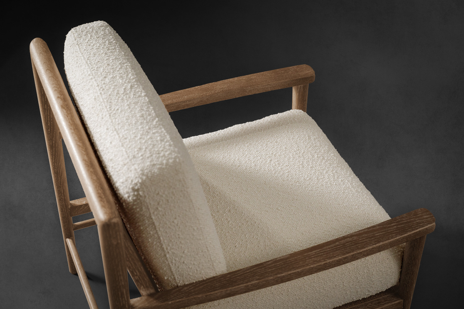 The Colton Armchair offers a perfect blend of modern design and traditional comfort, making it an ideal addition to any living room or lounge. Its ash wood frame, meticulously crafted, pairs beautifully with the plush boucle fabric cushioning, available in a soft mist colour. This armchair's stylish design ensures it stands out, while its refined presence adds an air of sophistication to your space. The Colton provides a comfortable seating experience without sacrificing elegance, making it a must-have for those who appreciate both form and function.