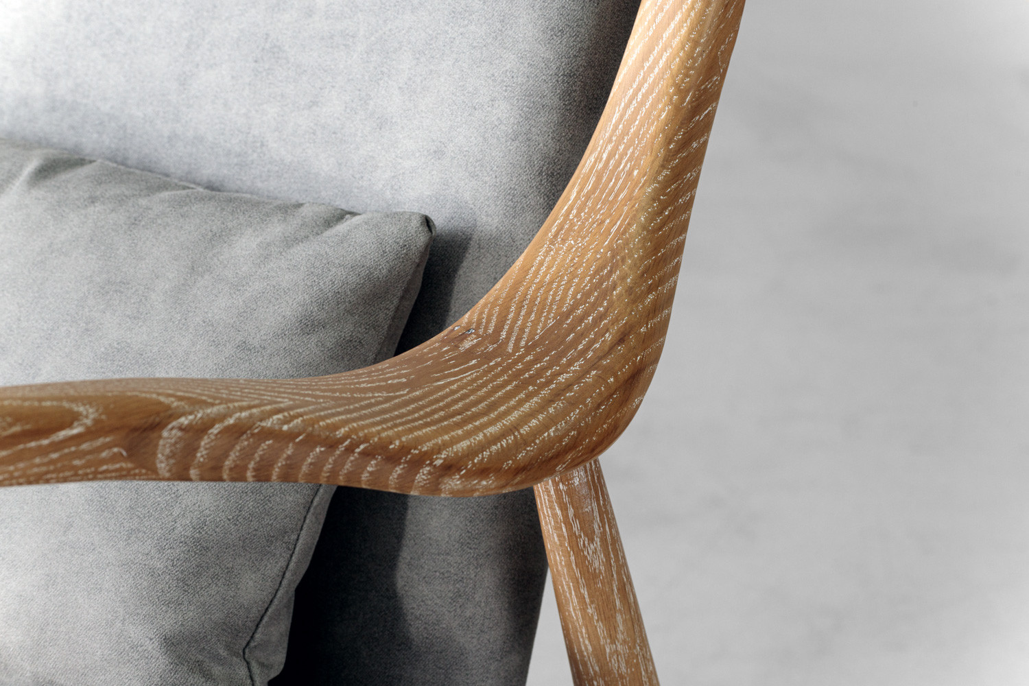 The Cordelia Armchair is the ultimate embodiment of character and comfort. Its contoured ash wood frame and polyester upholstery are definitive touches of modern luxury. Sit back in its charming embrace and get a feel for elegant everyday living.
