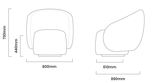 800mm (L) x 890mm (W) x 730mm (H) | Seat Height - 440mm | Seat Depth - 610mm