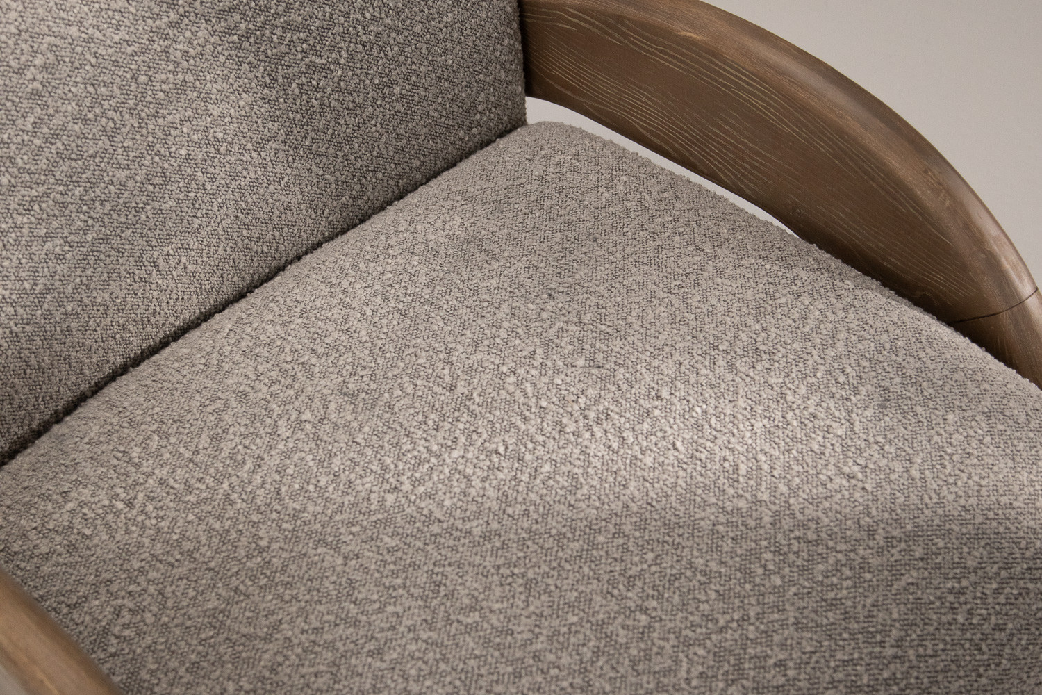 The Duneveil Armchair is a truly elegant place to unwind. Combining modern aesthetics with supreme comfort, it has been meticulously crafted with solid rubberwood arms and luxuriously upholstered in a soothing grey bouclé fabric. With its plush seat and dramatically curved armrests, the Duneveil offers an enticing blend of sophistication and relaxation.