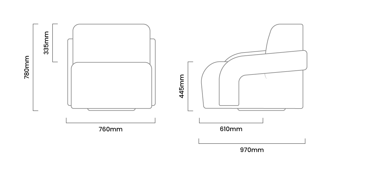 760mm (L) x 970mm (W) x 780mm (H) | Seat Height - 445mm| Seat Depth - 610mm