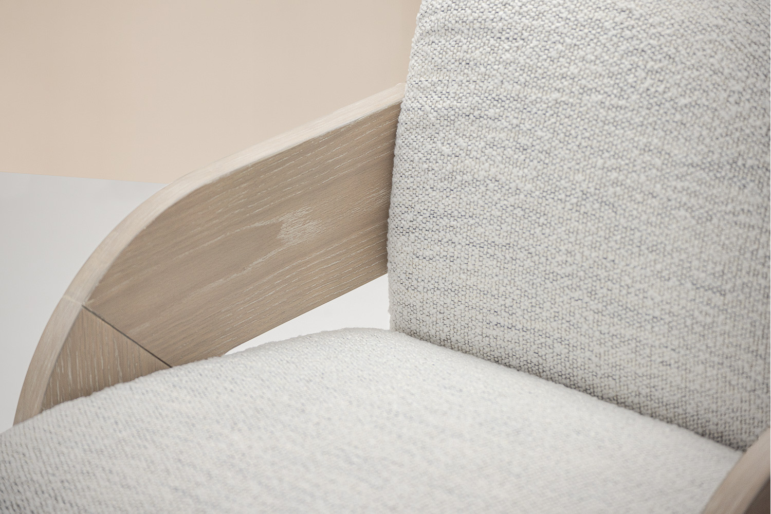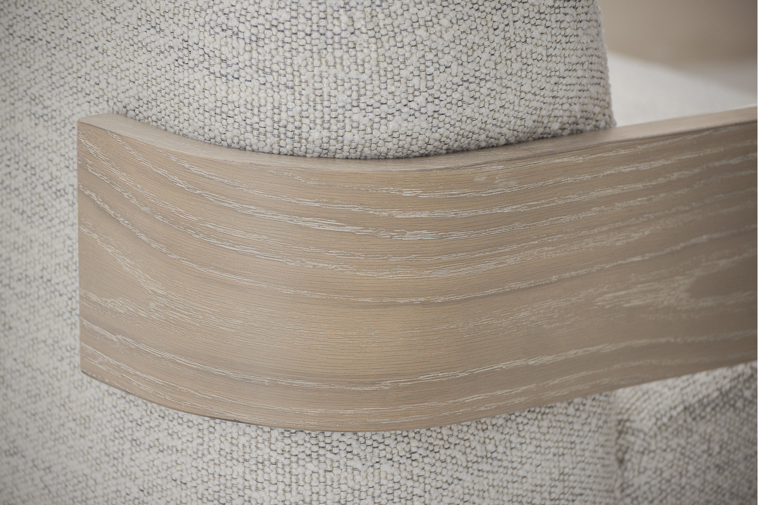 The Dyson Swivel Armchair is designed to be a standout piece in your home, offering both contemporary style and unparalleled comfort. Wrapped in soft boucle fabric, this armchair brings an elevated sense of luxury to any room, whether it’s the lounge, living room, or home office. Its arms are crafted from solid rubberwood, presenting natural warmth that contrasts beautifully with the boucle fabric.