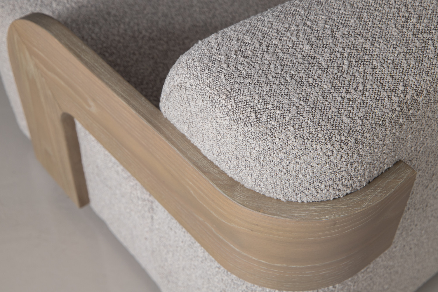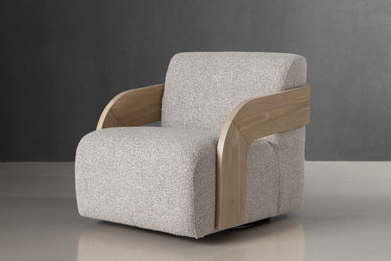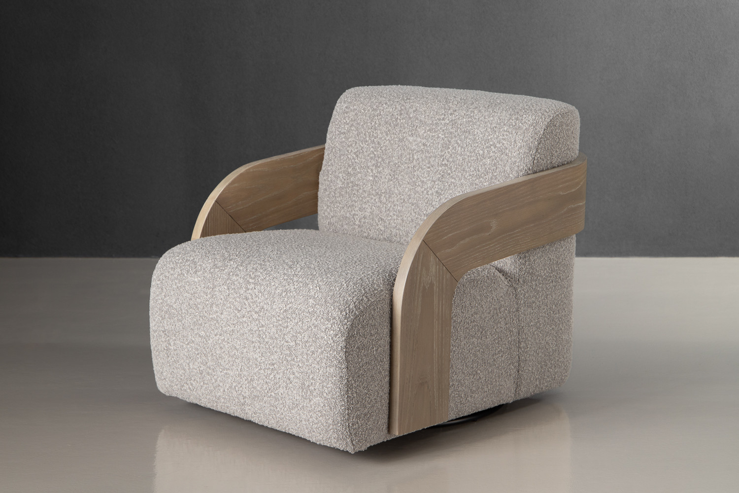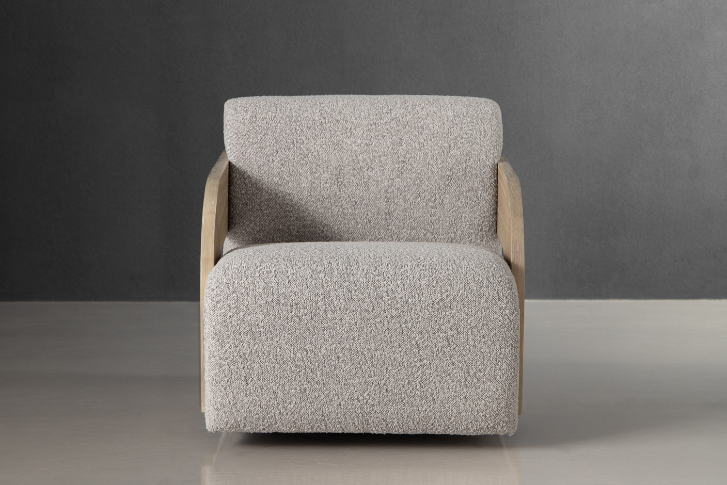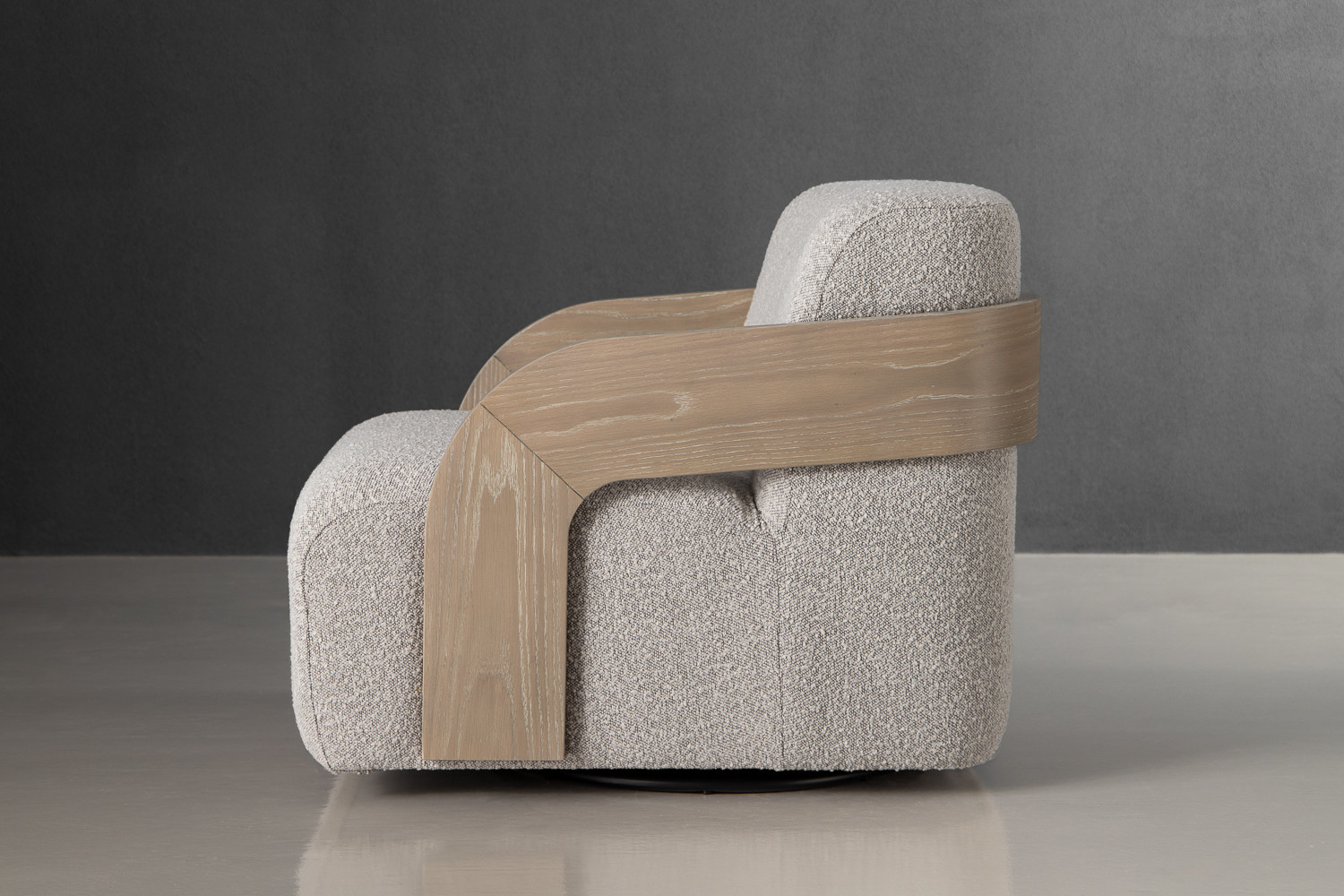 One of the defining features of the Dyson Swivel Armchair is its uniquely designed arms. Crafted from solid rubberwood, the arms present a natural warmth that contrasts beautifully with the boucle fabric, adding a distinct design element that draws the eye. The wood's organic finish highlights the armchair's modern aesthetic, making it suitable for a variety of interior styles—whether you prefer minimalist décor or something more eclectic.