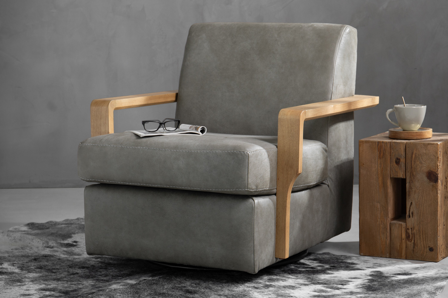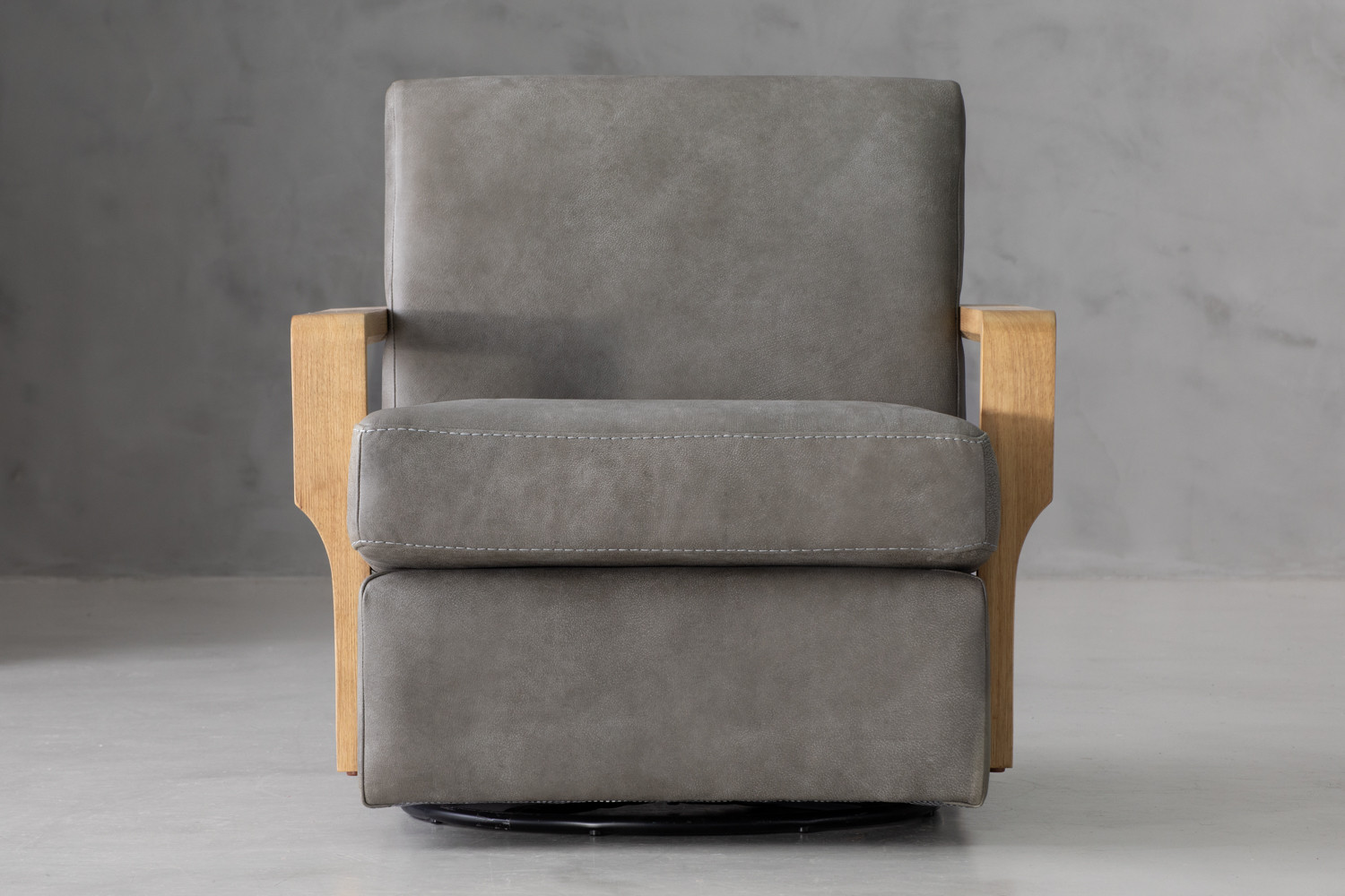 Elevate your living space with the exquisite Elara Leather Swivel Armchair, a paragon of modern luxury. Adorned in full grain leather and cradled by a refined Rubberwood frame, this chair seamlessly combines comfort with sophistication. Its swivel base adds an element of versatility, making it a captivating centrepiece for any room.