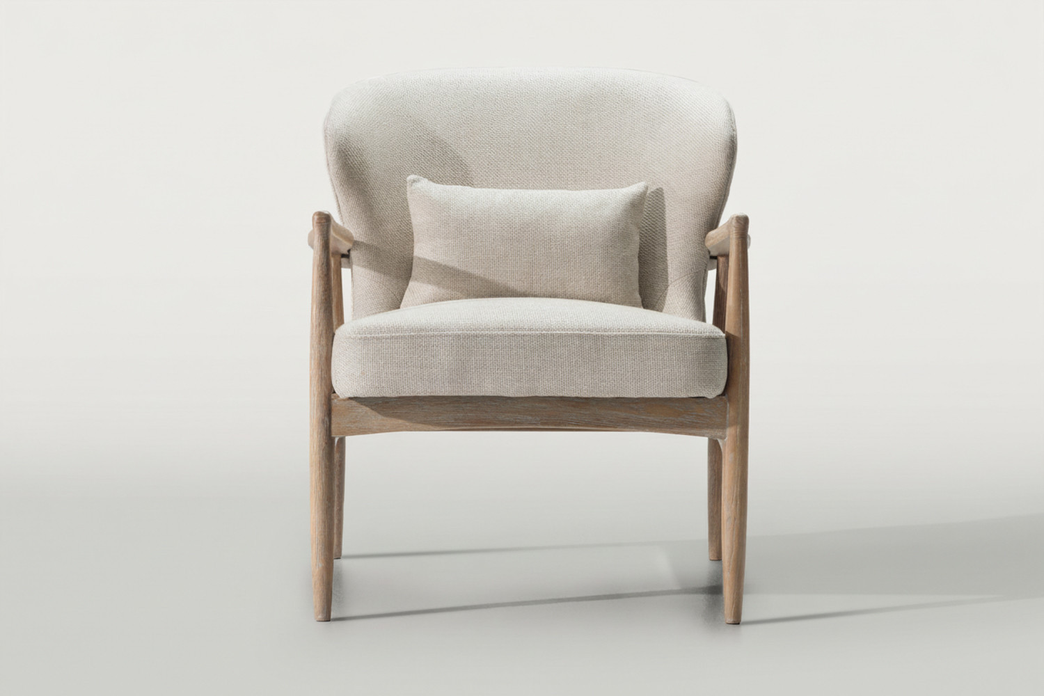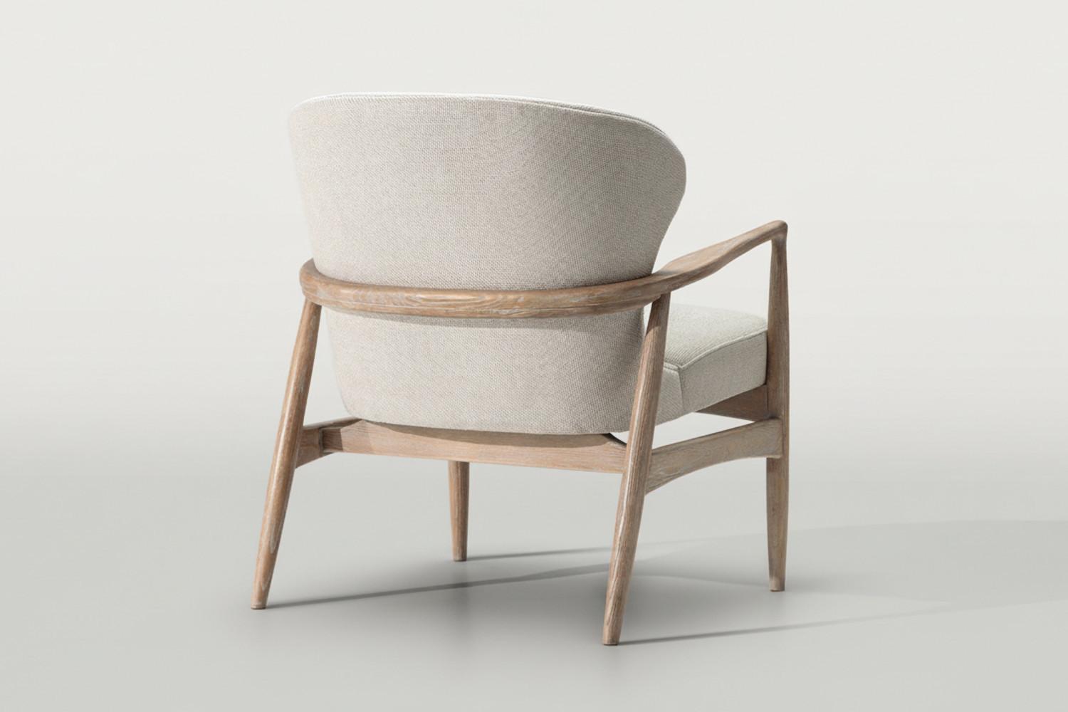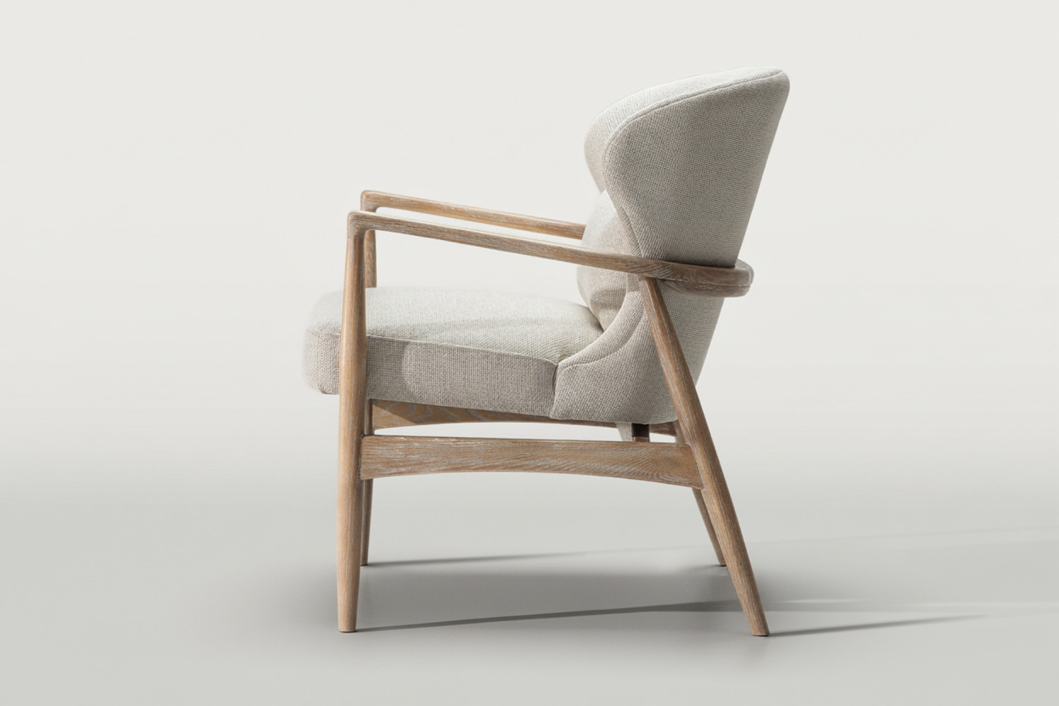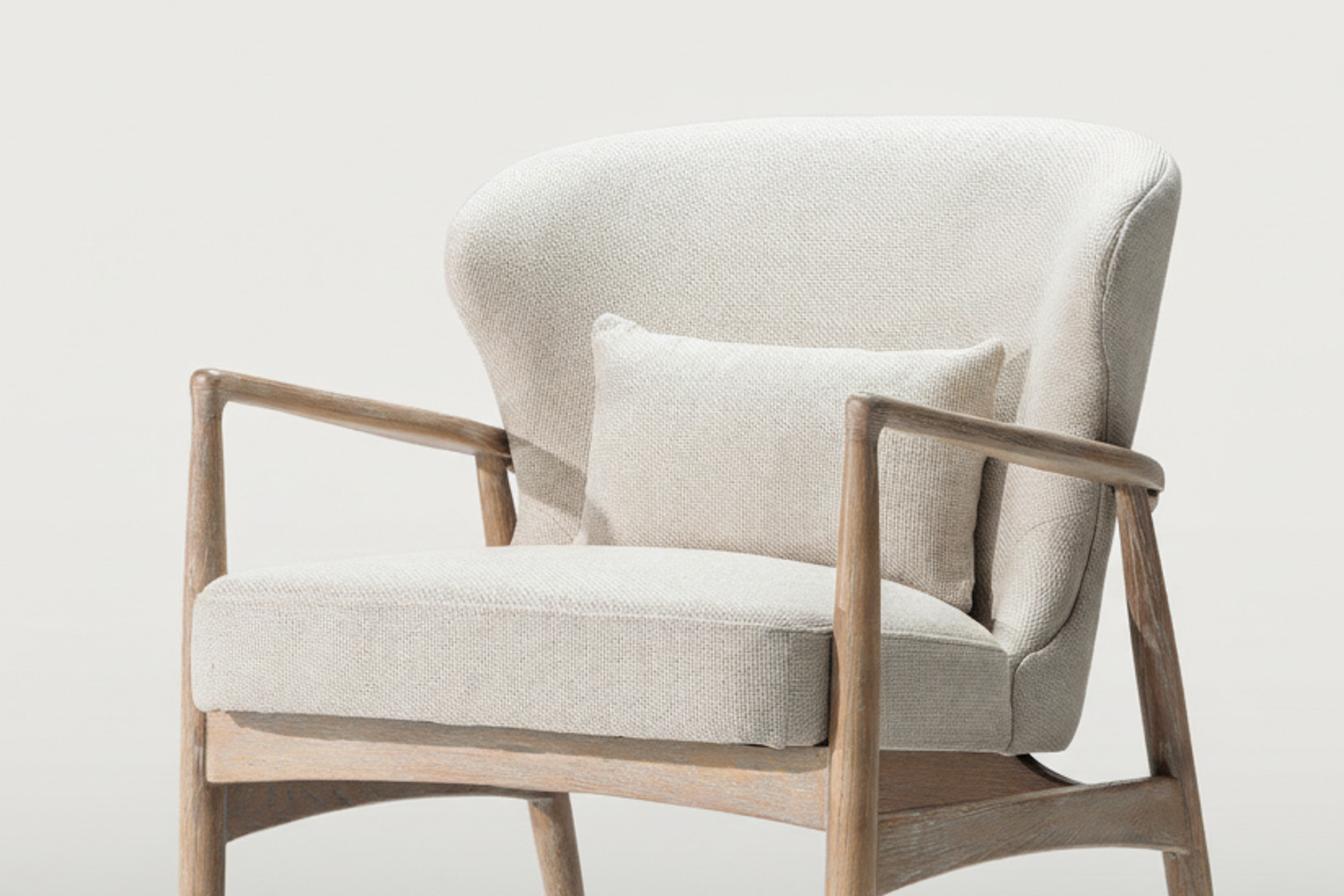 The Enola Armchair is designed to bring harmony into your home. Crafted from solid ash wood and upholstered in a textured cream fabric, it invites you to unwind in refined comfort. With its dramatic backrest curvature and tapered armrests, the Enola perfectly balances beauty with everyday comfort.