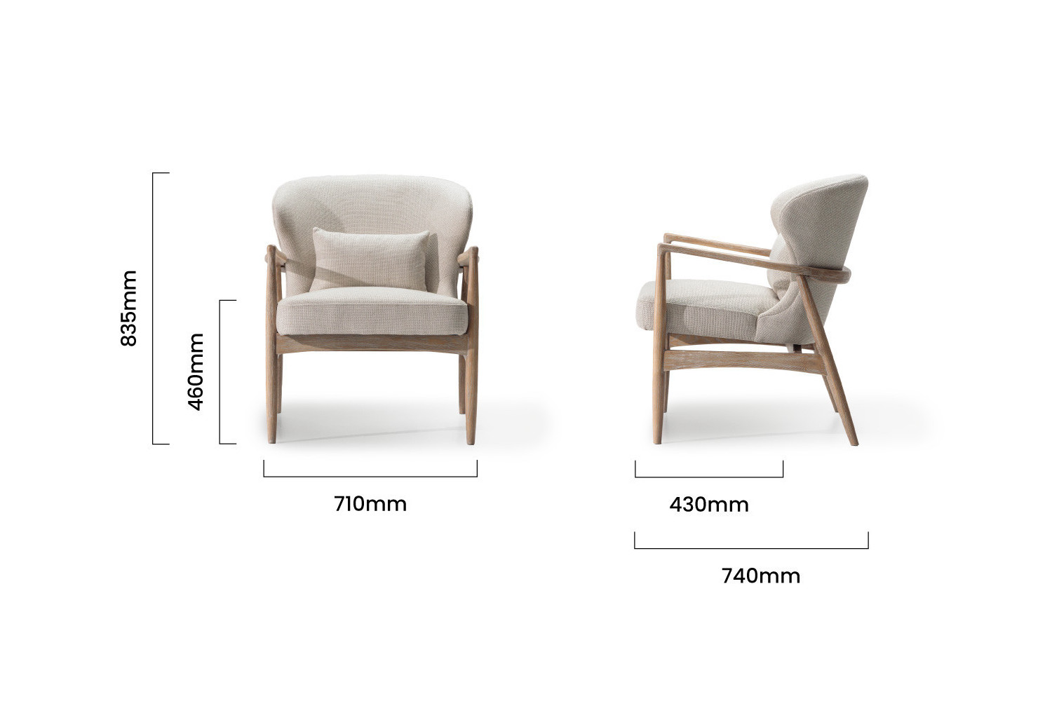 710mm (L) x 740mm (W) x 835mm (H) | Seat Height - 460mm | Seat Depth - 430mm