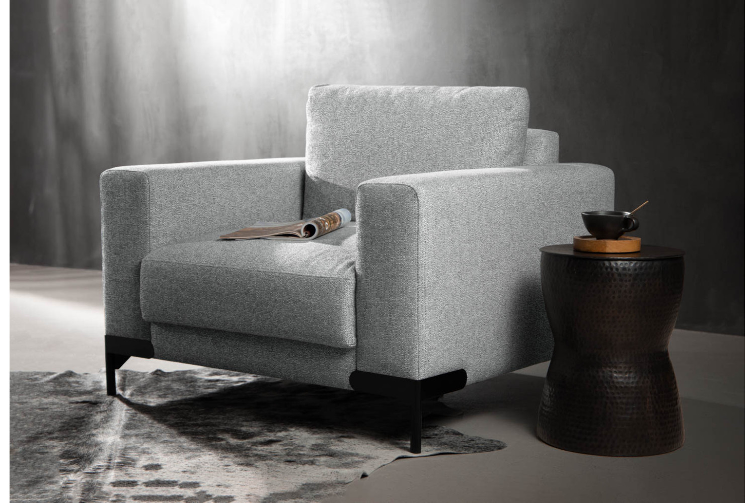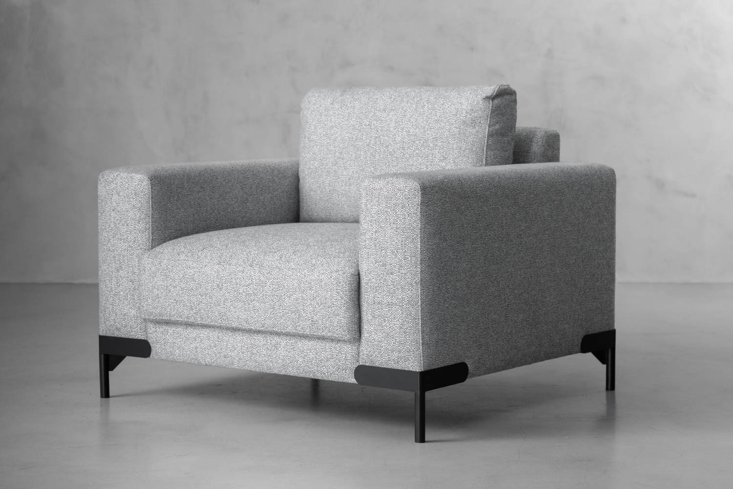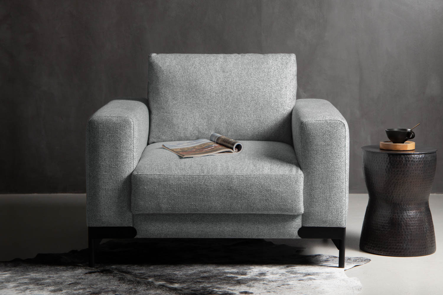 The Houston Armchair invites sheer relaxation with its blend of comfort and style. Wrapped in high-quality polyester upholstery, it offers plush seating and enduring craftsmanship. The design provides ample space for lounging, while the black powder-coated steel legs add a sturdy base with a modern touch.