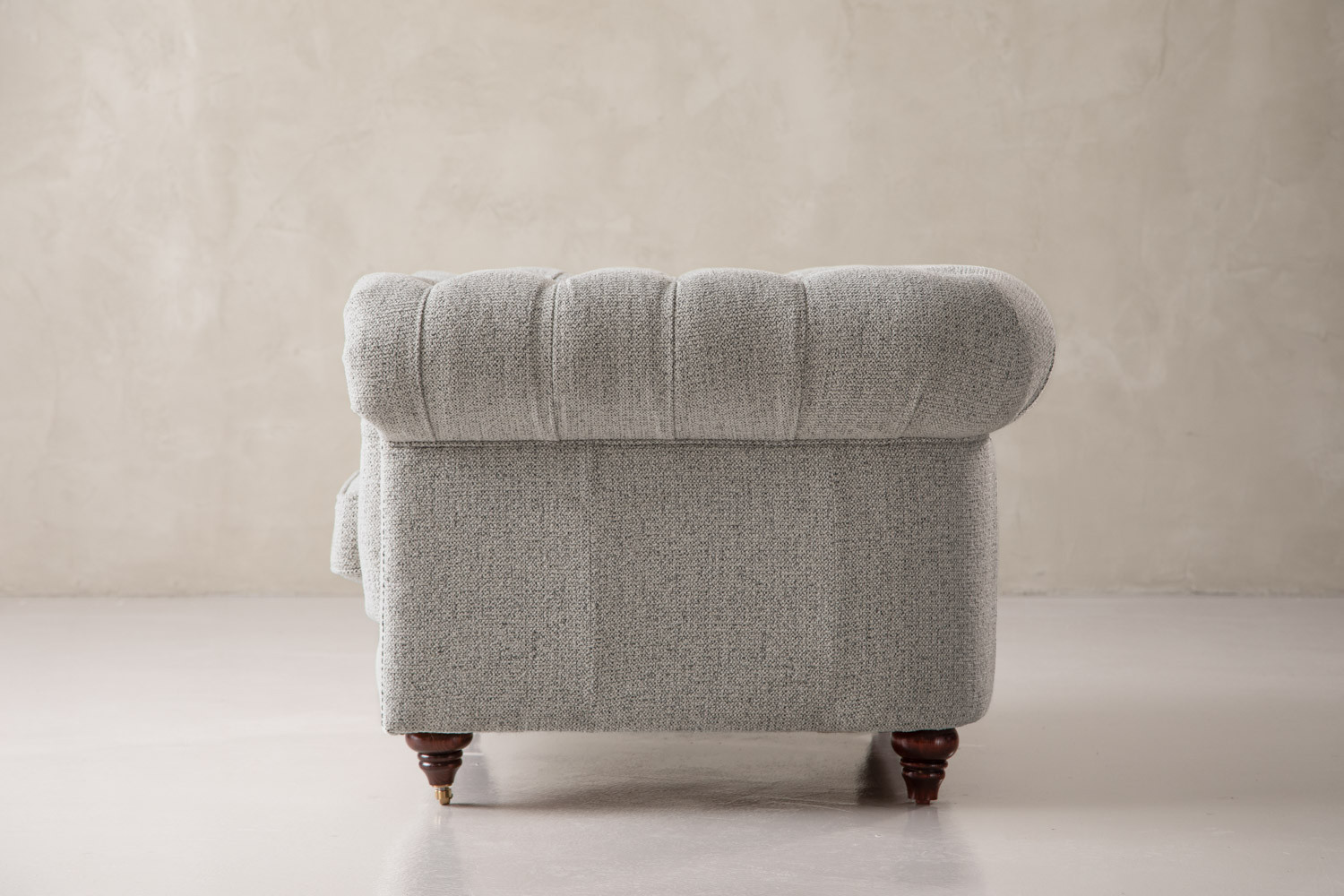 Add a classy, luxurious statement piece to your home with the Jefferson, a timeless style icon. The gorgeously soft surface, deep-buttoned tufting, and thick cushioning make this one of the most comfortable couches you’ll ever sit on. Bevelled wooden feet add to the traditional charm of the design, while piano caster front feet allow for easy repositioning when you decide it’s time to cosy up to the fireplace. Grab a leather-bound diary or classic novel, and you’re all set!