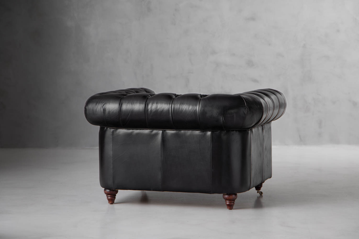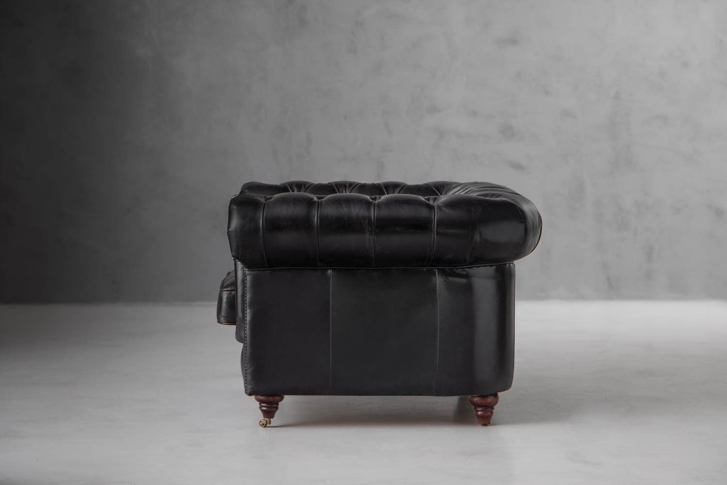 Add a classy, luxurious statement piece to your home with the Jefferson, a timeless style icon. Our Jefferson range features the finest in full grain leather. The gorgeously soft surface, deep-buttoned tufting, and thick cushioning make this one of the most comfortable couches you’ll ever sit on. Bevelled wooden feet add to the traditional charm of the design, while piano caster front feet allow for easy repositioning when you decide it’s time to cosy up to the fireplace, grab a leather-bound diary or classic novel, and you’re all set!