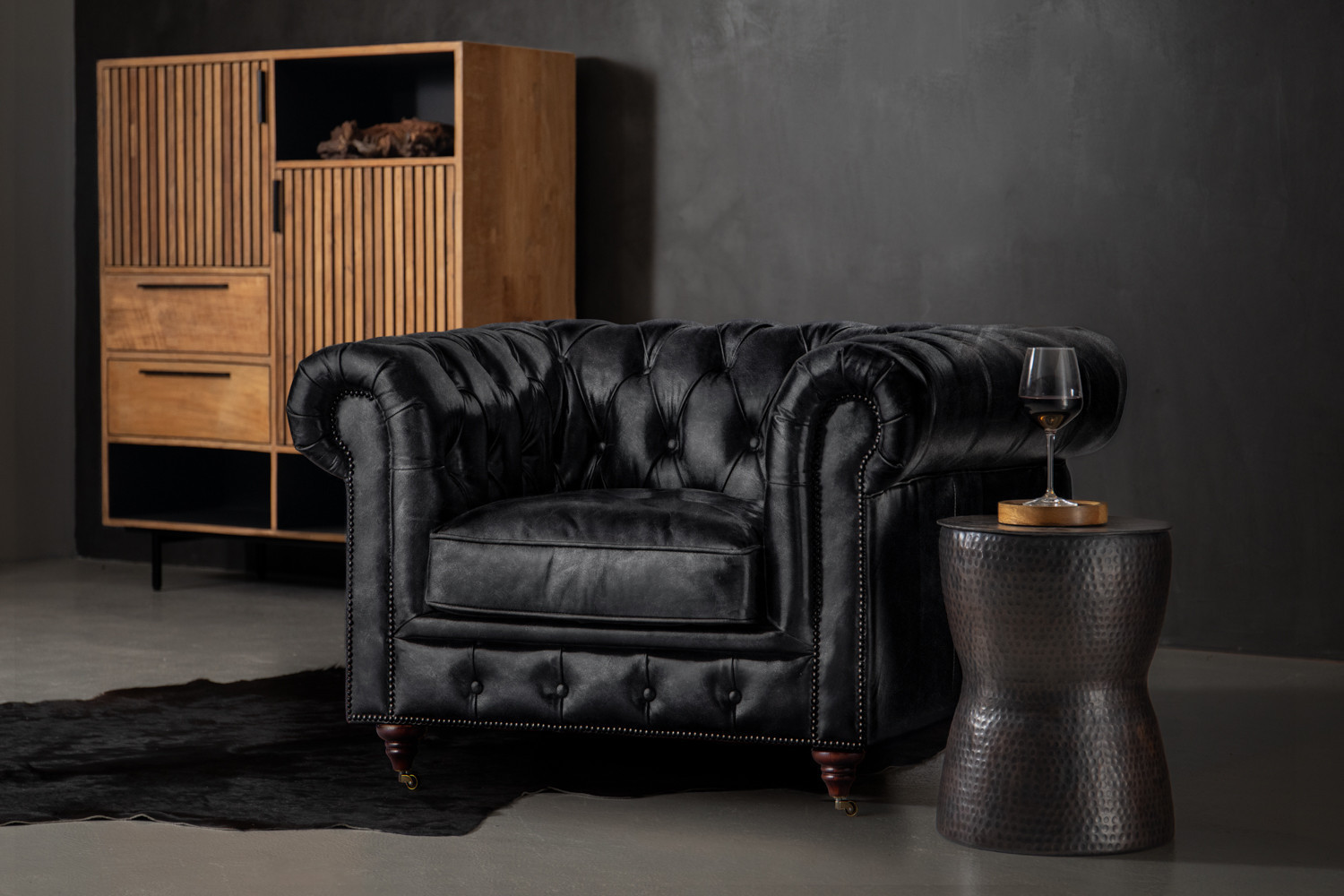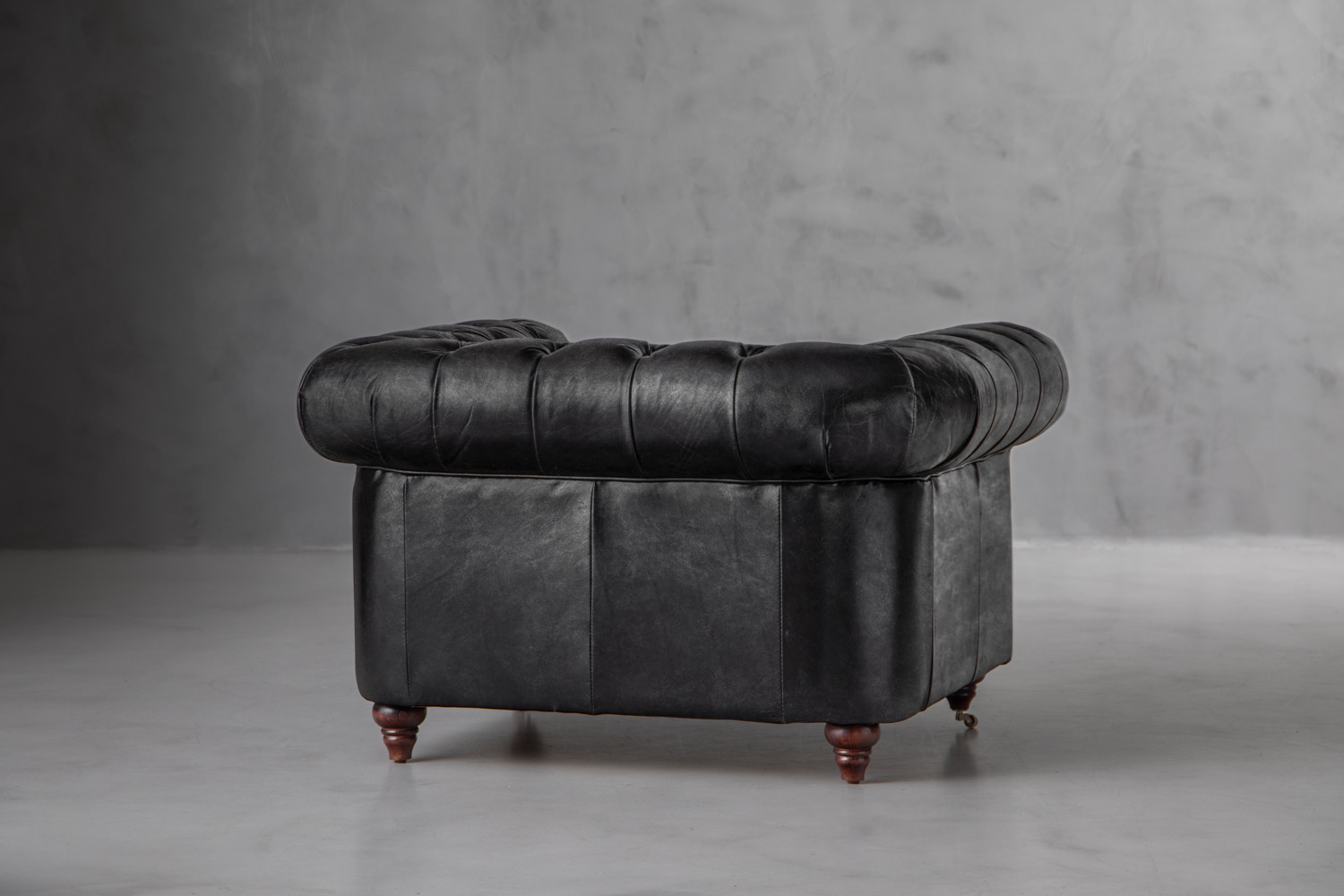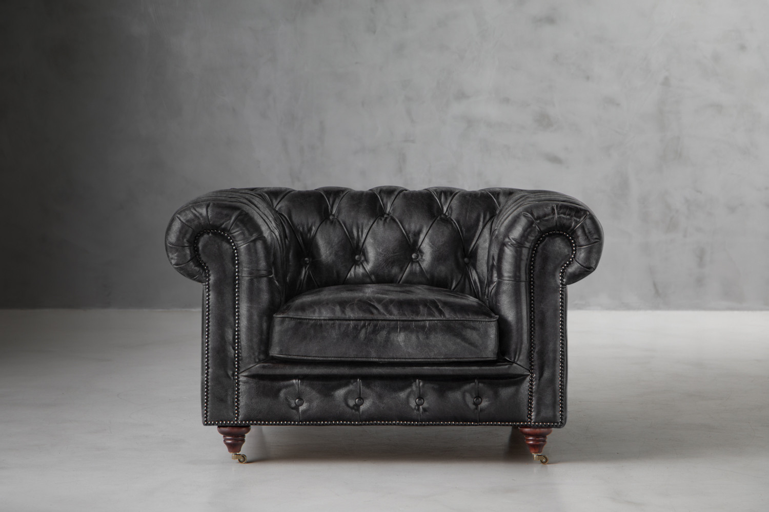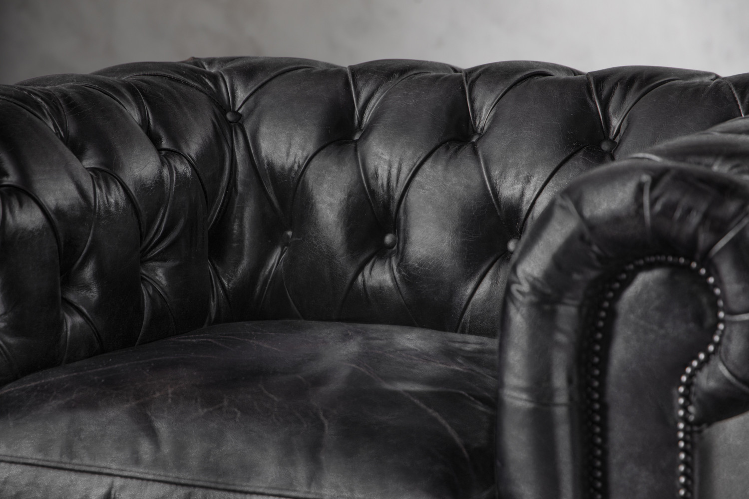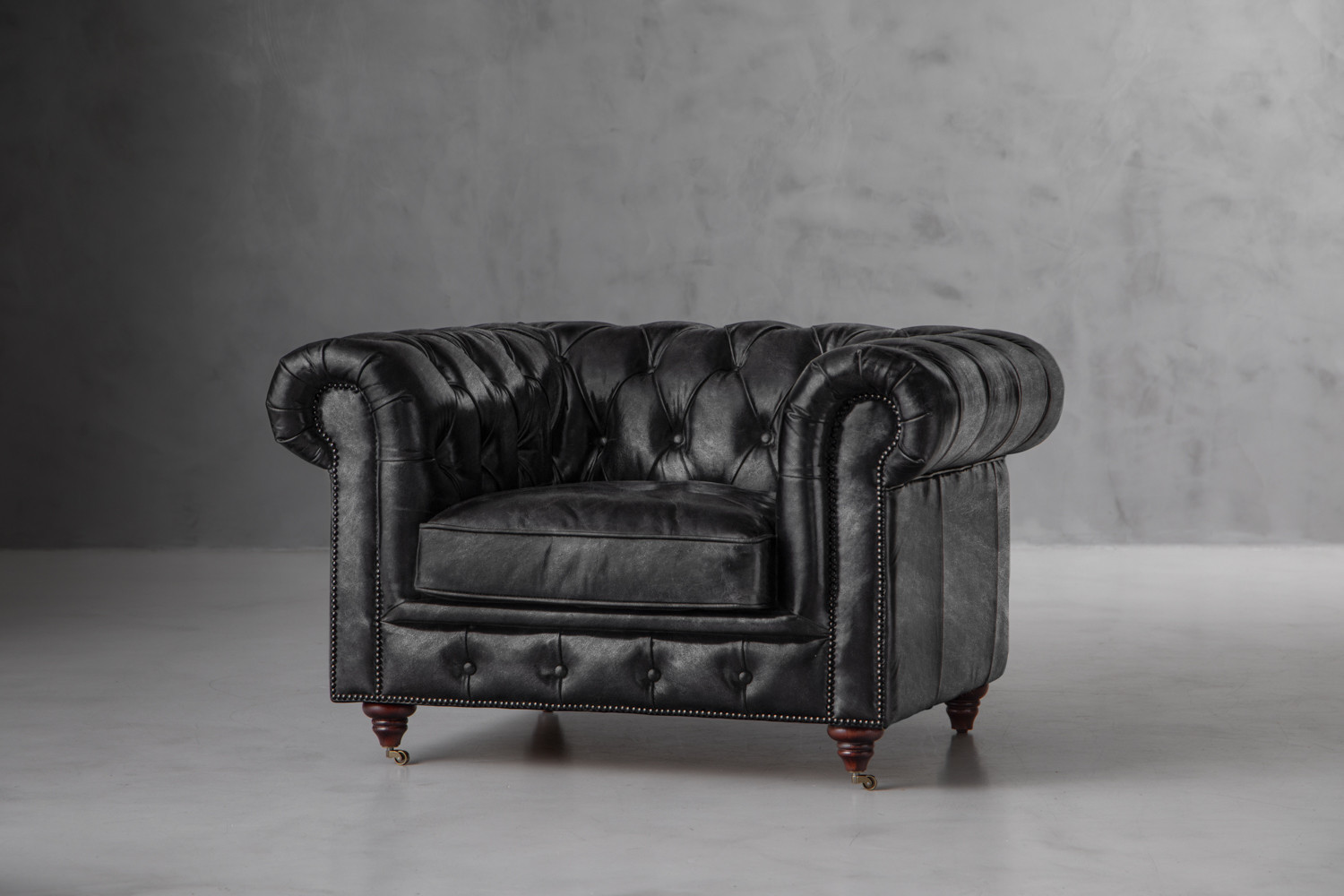 Jefferson Chesterfield Leather Armchair - Distressed Black
