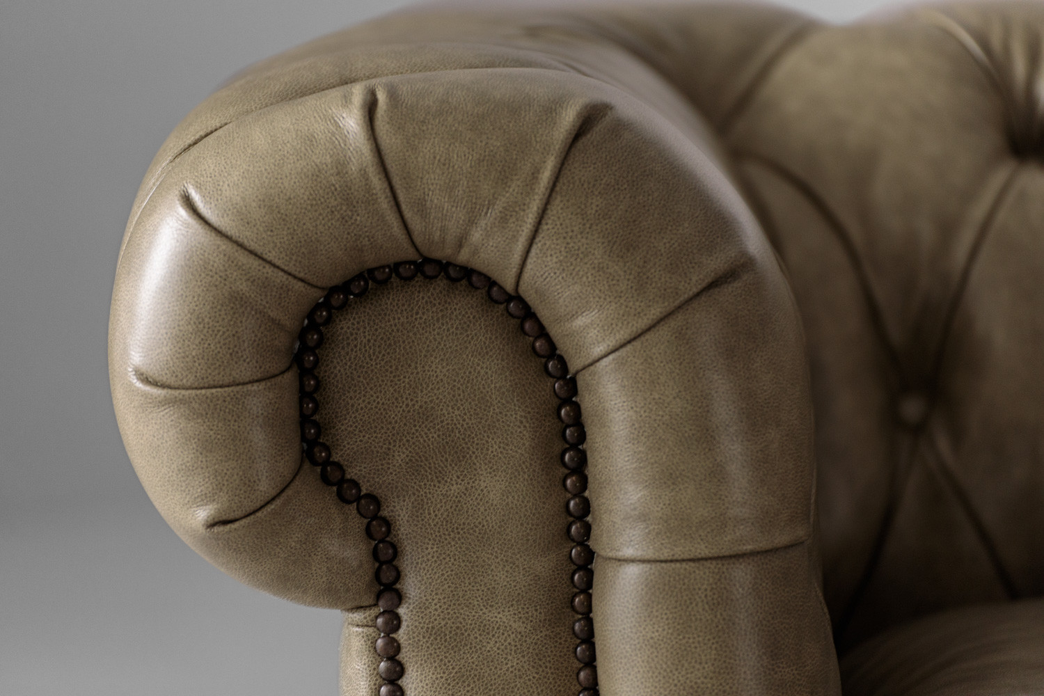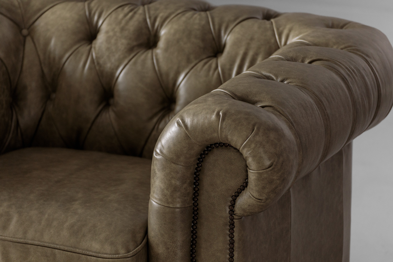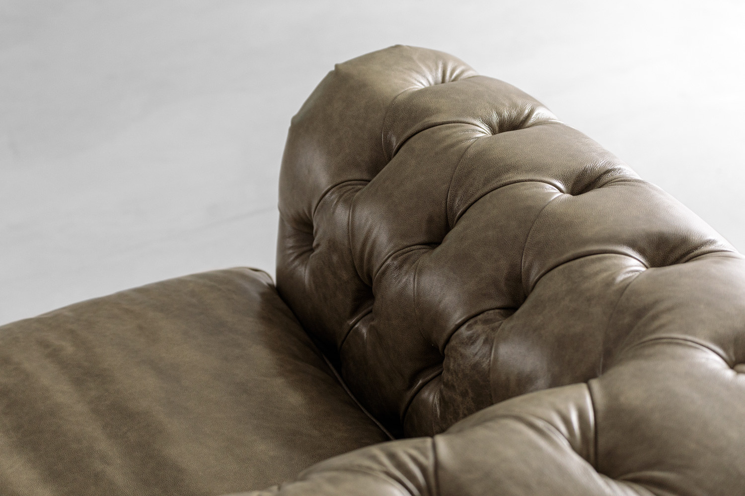 The iconic Jefferson Leather Armchair will command any room with effortless charm. With its iconic deep button tufting, high rolled arms and nailhead trim, the design has proven itself as a timeless classic over the years. Our Jefferson lives up to its reputation, ensuring the feel of suave luxury with its full grain leather upholstery and piano caster front feet.