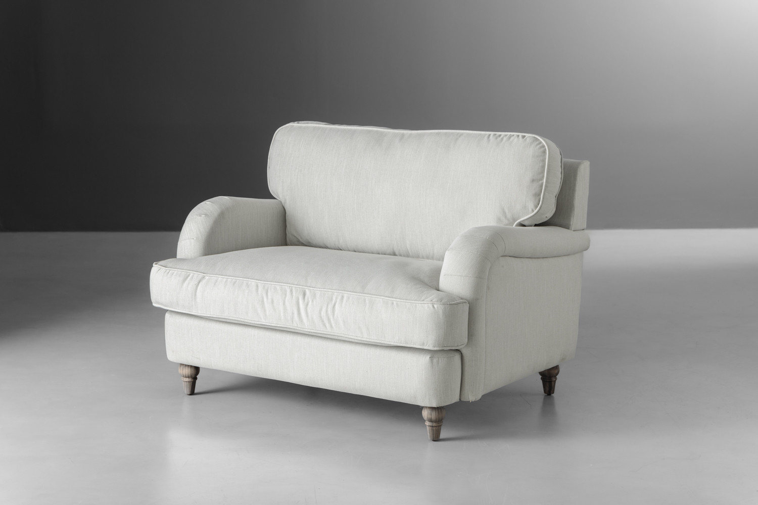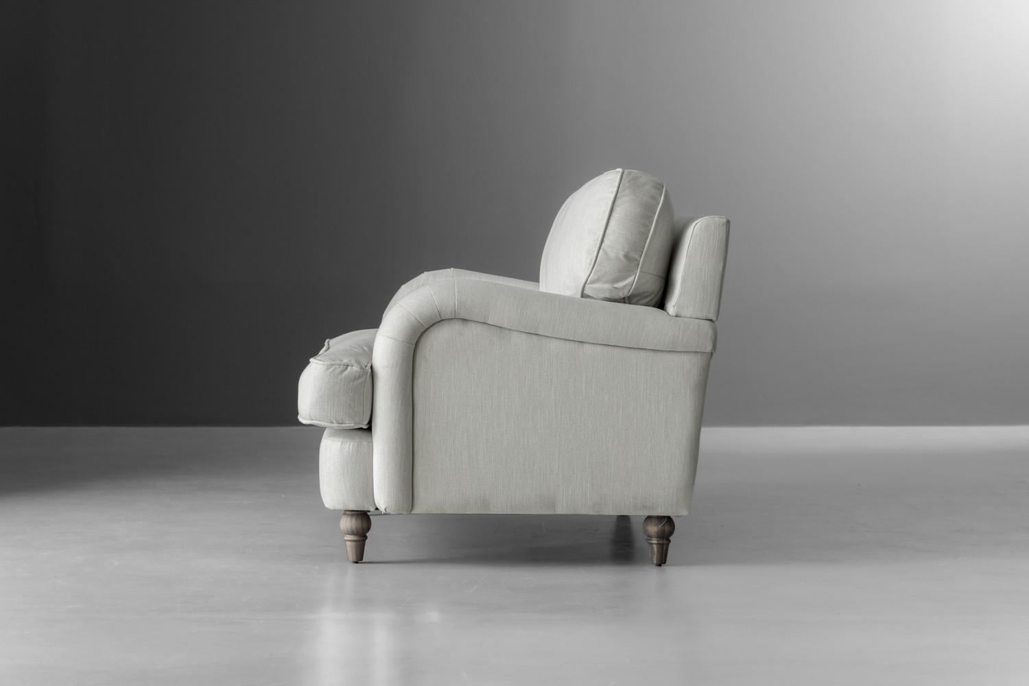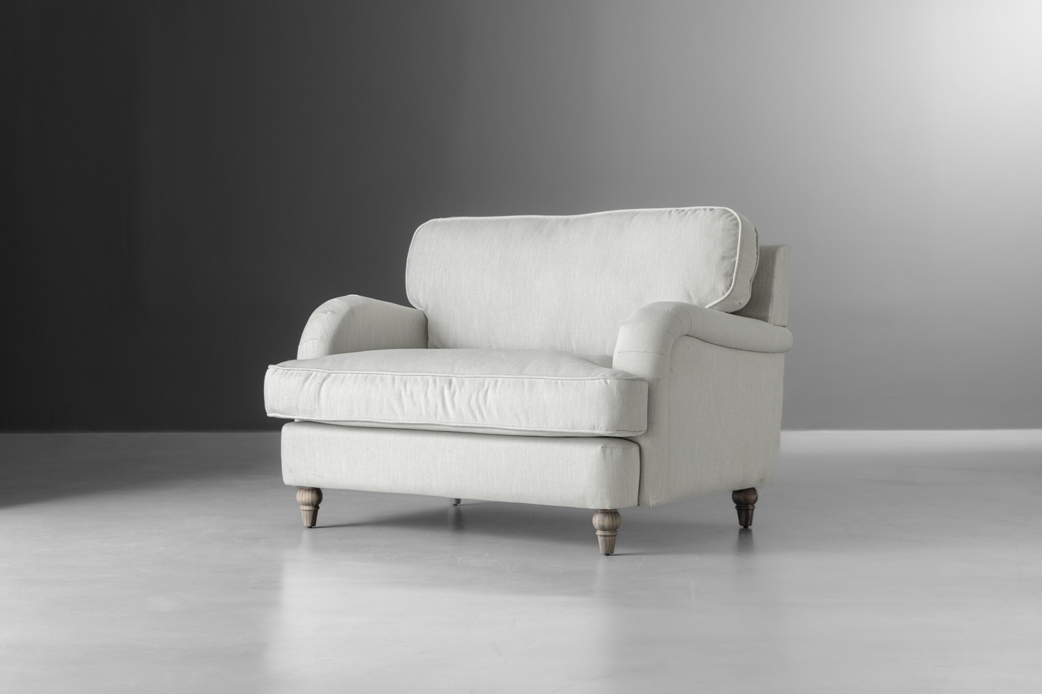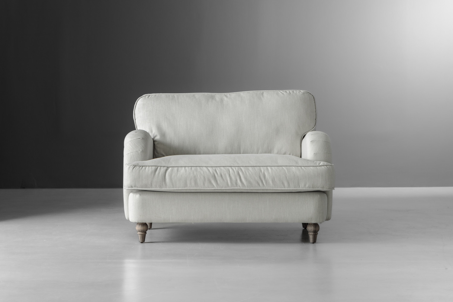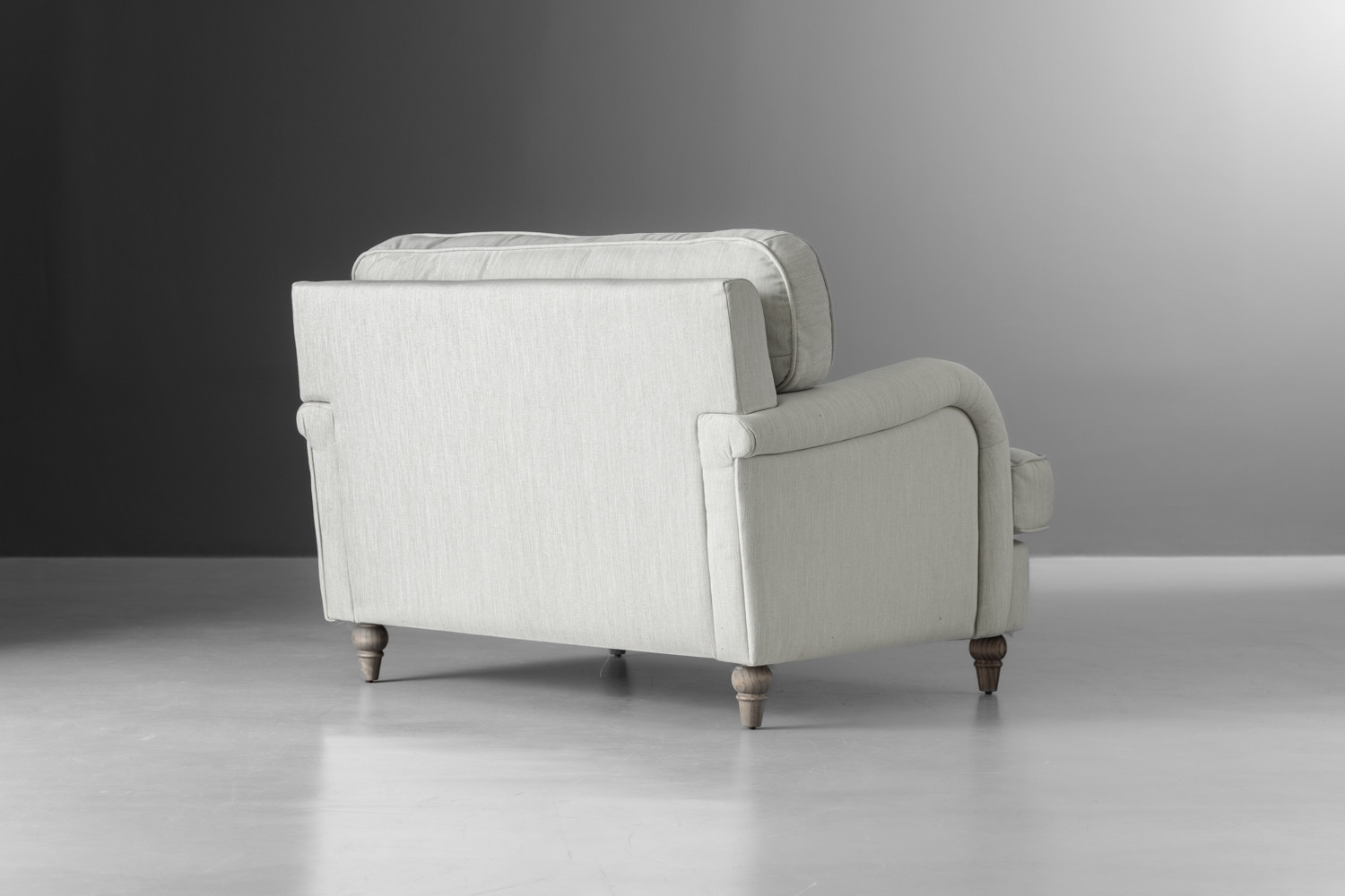 The Joplin features plush cushioning, a robust and inviting frame, and classic turned wooden legs. Its welcoming embrace makes it the ideal spot for intimate conversations or a relaxing escape within your own living space.