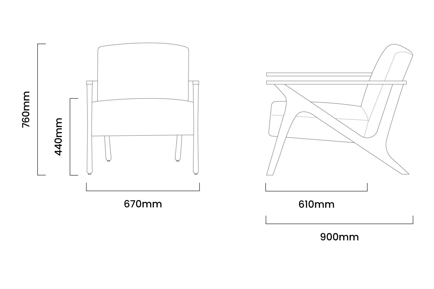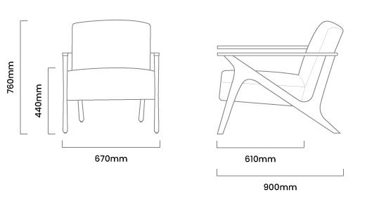 670mm (L) x 900mm (W) x 760mm (H) | Seat Height - 440mm | Seat Depth - 610mm