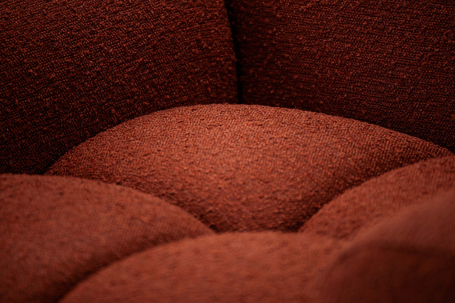 The Norhaven Armchair blends comfort and creative design into an unforgettable statement piece. Wrapped in sumptuous bouclé and shaped with bold curves, this armchair creates a unique silhouette that suits a variety of interior settings. Its generously padded seating, soft copper tones, and plush texture invite you to sit back and unwind with a modern twist on classic comfort.