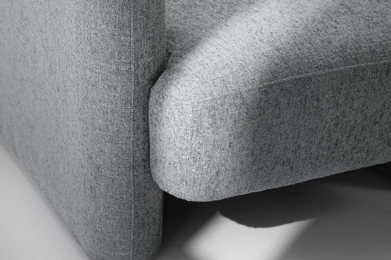 Bold and beautifully sculpted, the Norvin Armchair commands attention with its striking form and deep, textured upholstery with grey tones. Wrapped in durable fabric with a luxuriously soft feel, this contemporary piece offers generous cushioning and support that envelopes you. It’s a perfect choice for homemakers who crave both comfort and character.