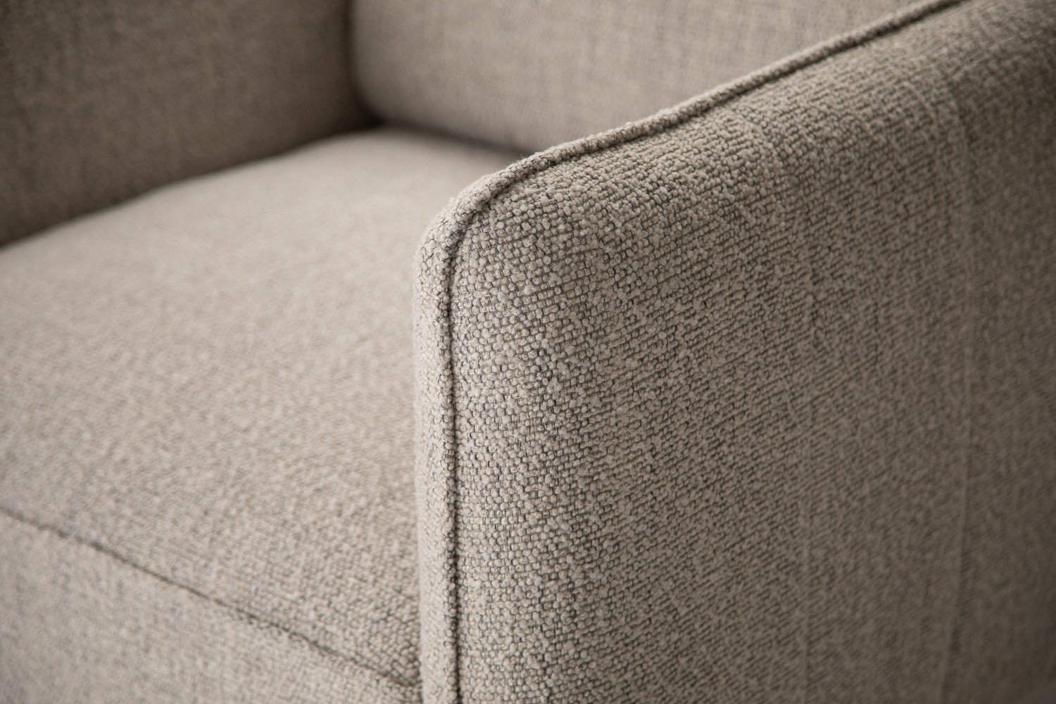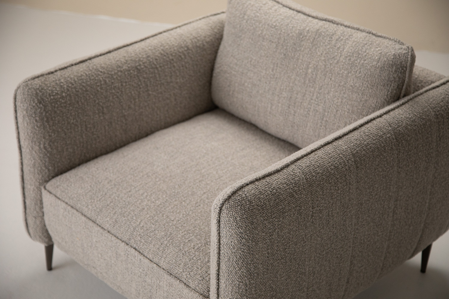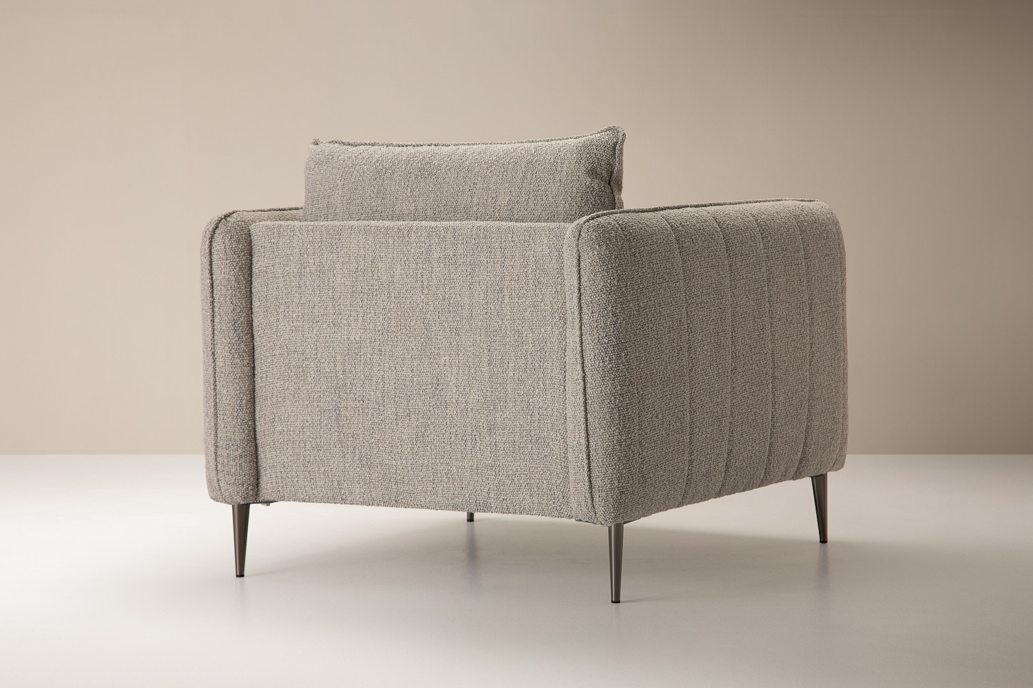 With its mid-century modern inspired design, this sleek and well-proportioned armchair emphasises easy comfort and clean lines for a simple yet elegant look. High-quality upholstery adds a luxurious finish, with tapered steel legs perfectly contrasting and balancing the design overall.