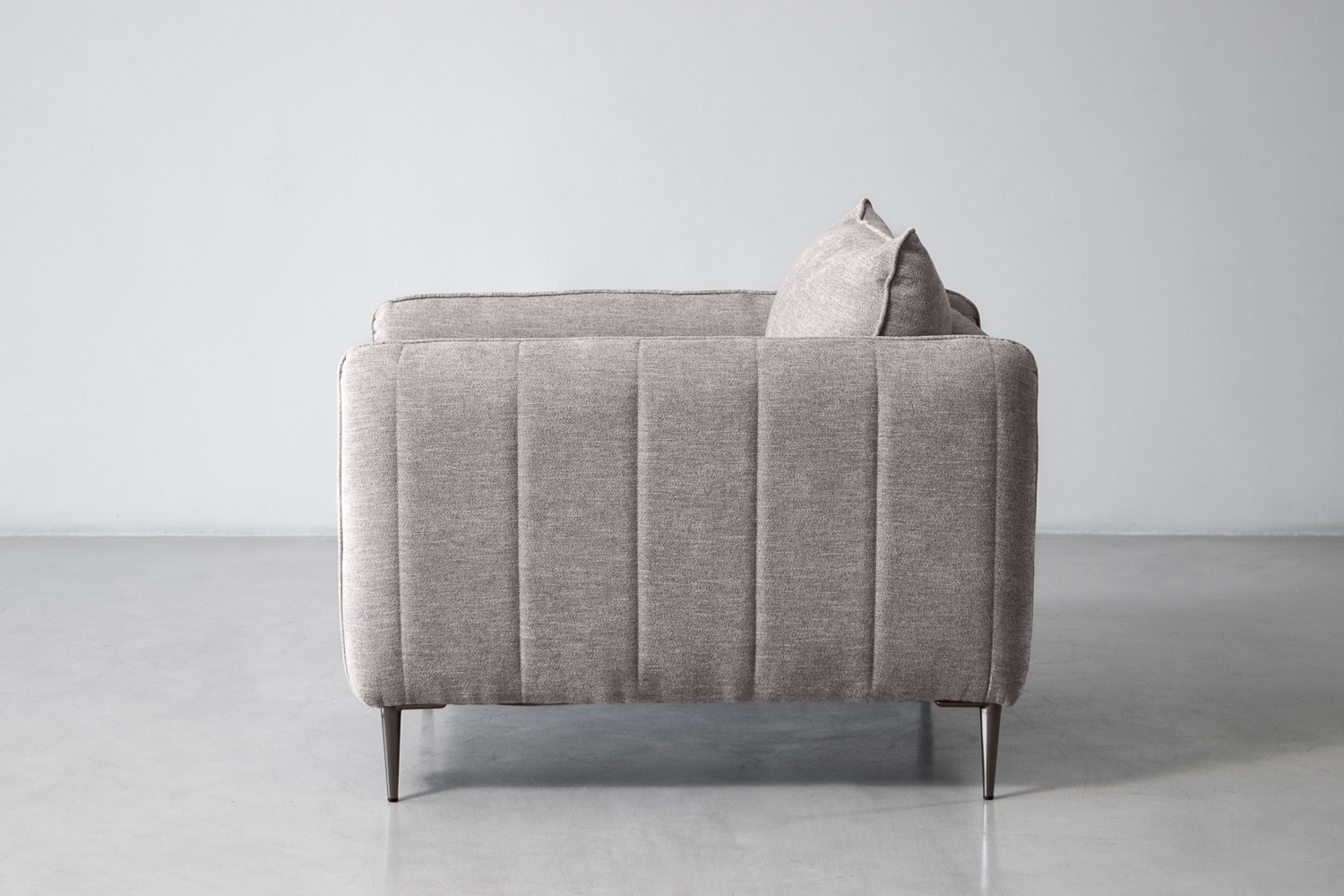 With its Mid-century modern inspired design, this sleek and well-proportioned armchair emphasises easy comfort and clean lines for a simple yet elegant look. High quality upholstery adds a luxurious finish, with tapered steel legs perfectly contrasting and balancing the design overall.