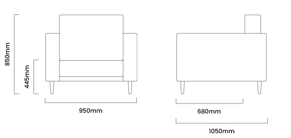 950mm (L) x 1050mm (W) x 850mm (H) | Seat Height - 445mm | Seat Depth - 680mm