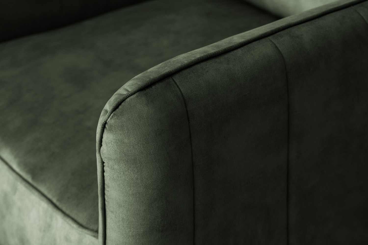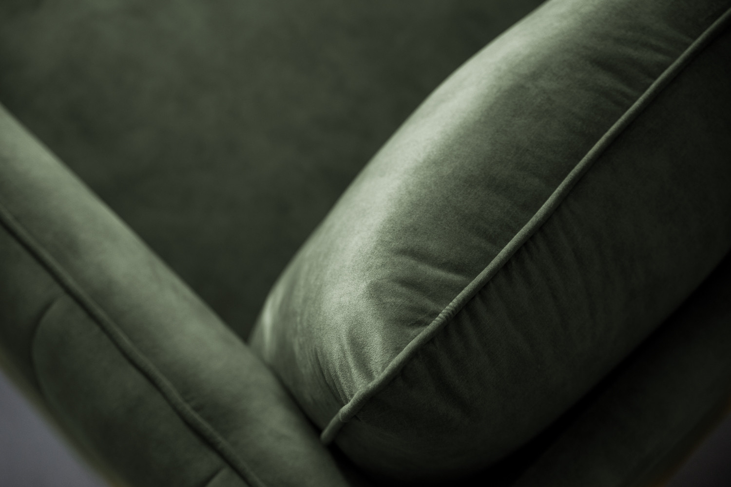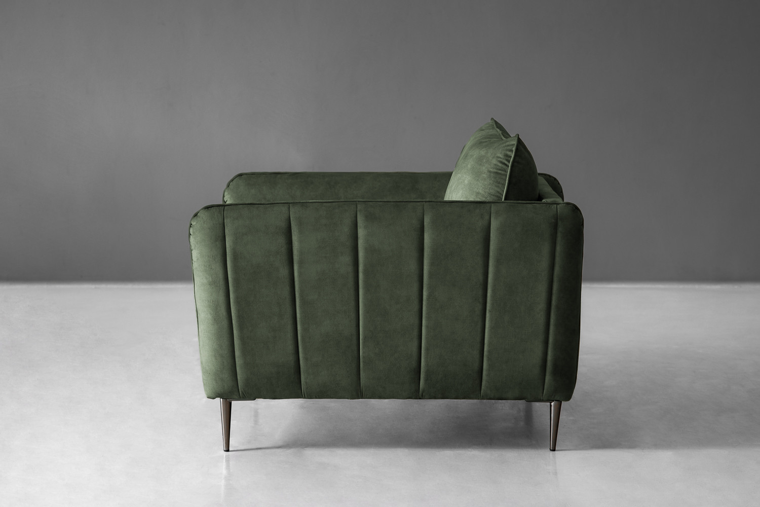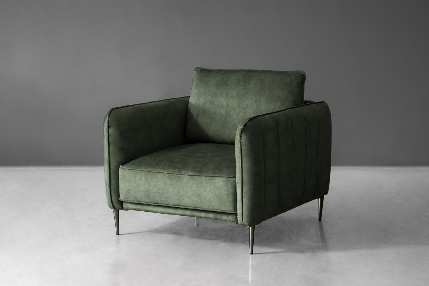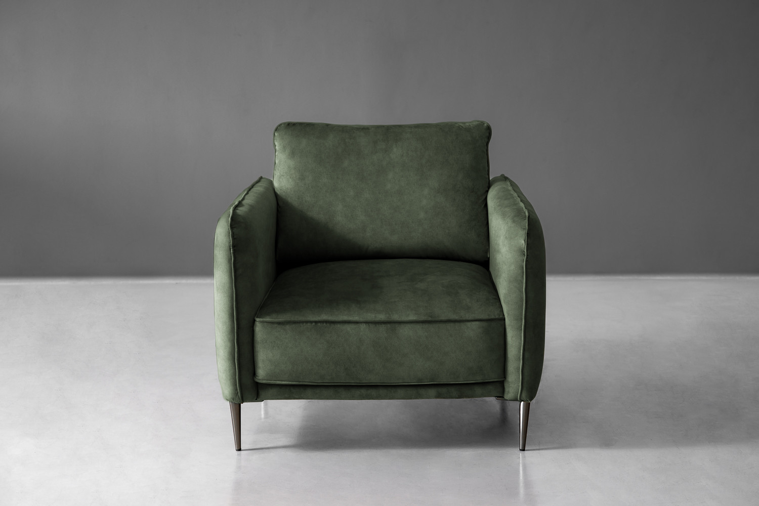 With its Mid-century modern inspired design, this sleek and well-proportioned armchair emphasises easy comfort and clean lines for a simple yet elegant look. High quality velvet upholstery adds a luxurious finish, with tapered steel legs perfectly contrasting and balancing the design overall.