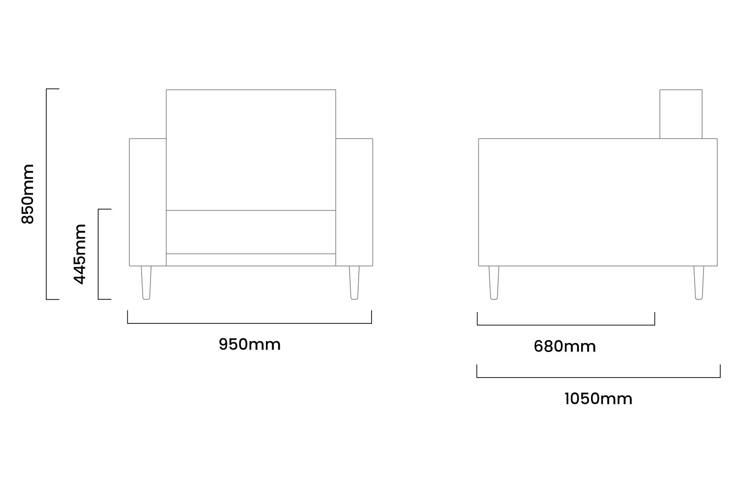 950mm (L) x 1050mm (W) x 850mm (H) | Seat Height - 445mm | Seat Depth - 680mm