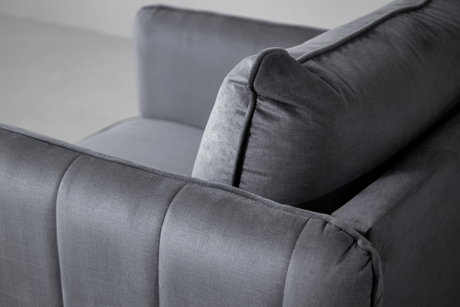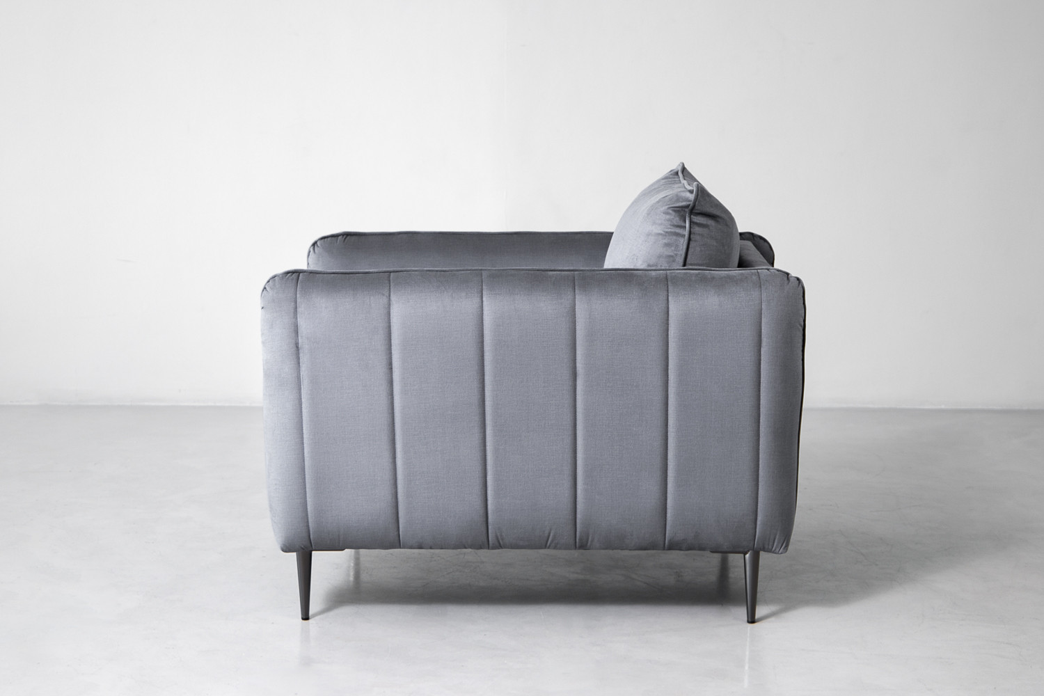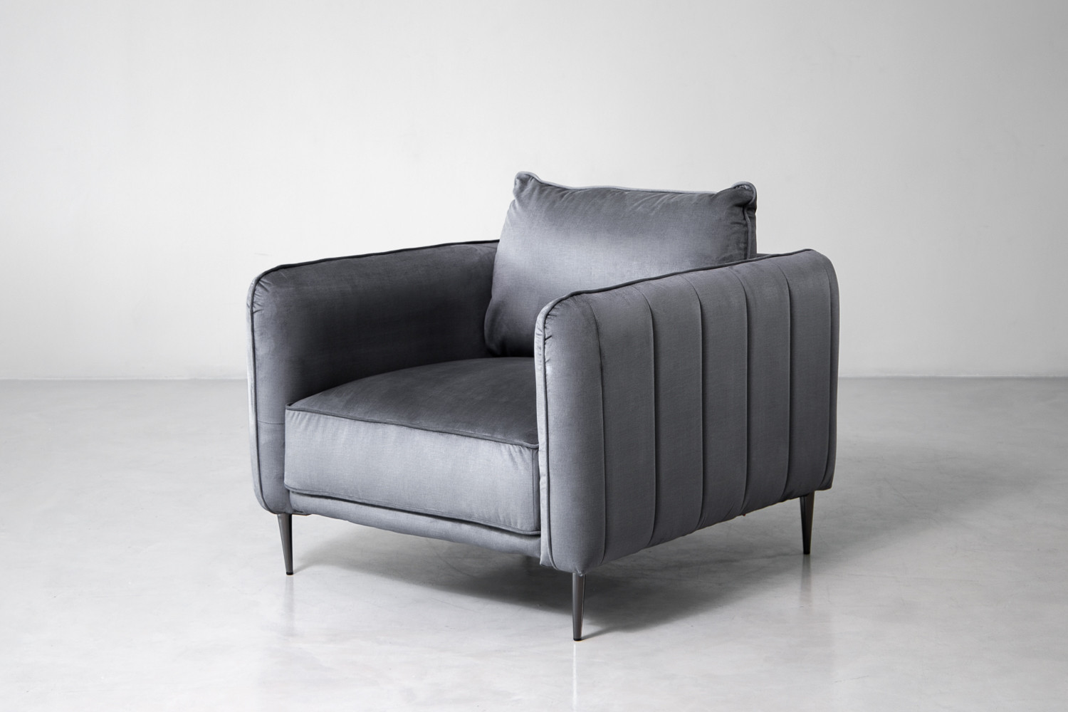 With its Mid-century modern inspired design, this sleek and well-proportioned armchair emphasises easy comfort and clean lines for a simple yet elegant look. High quality velvet upholstery adds a luxurious finish, with tapered steel legs perfectly contrasting and balancing the design overall.