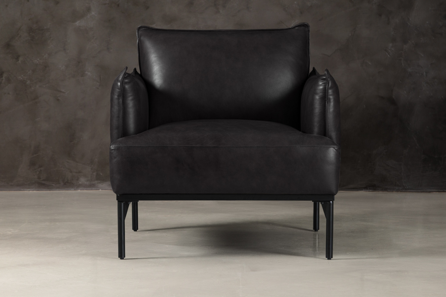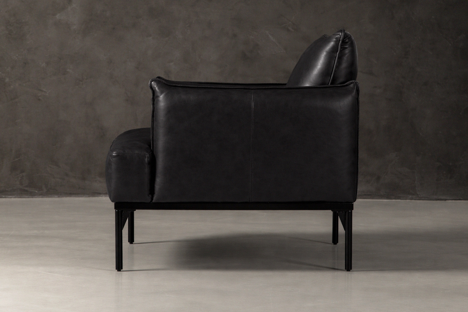 If you are looking for a welcoming seat to relax in after a long day, look no further than the comfort of the Plymouth Armchair. Unique design features include the reversed seam stitching and powder-coated steel legs, which add to the piece's strong presence.