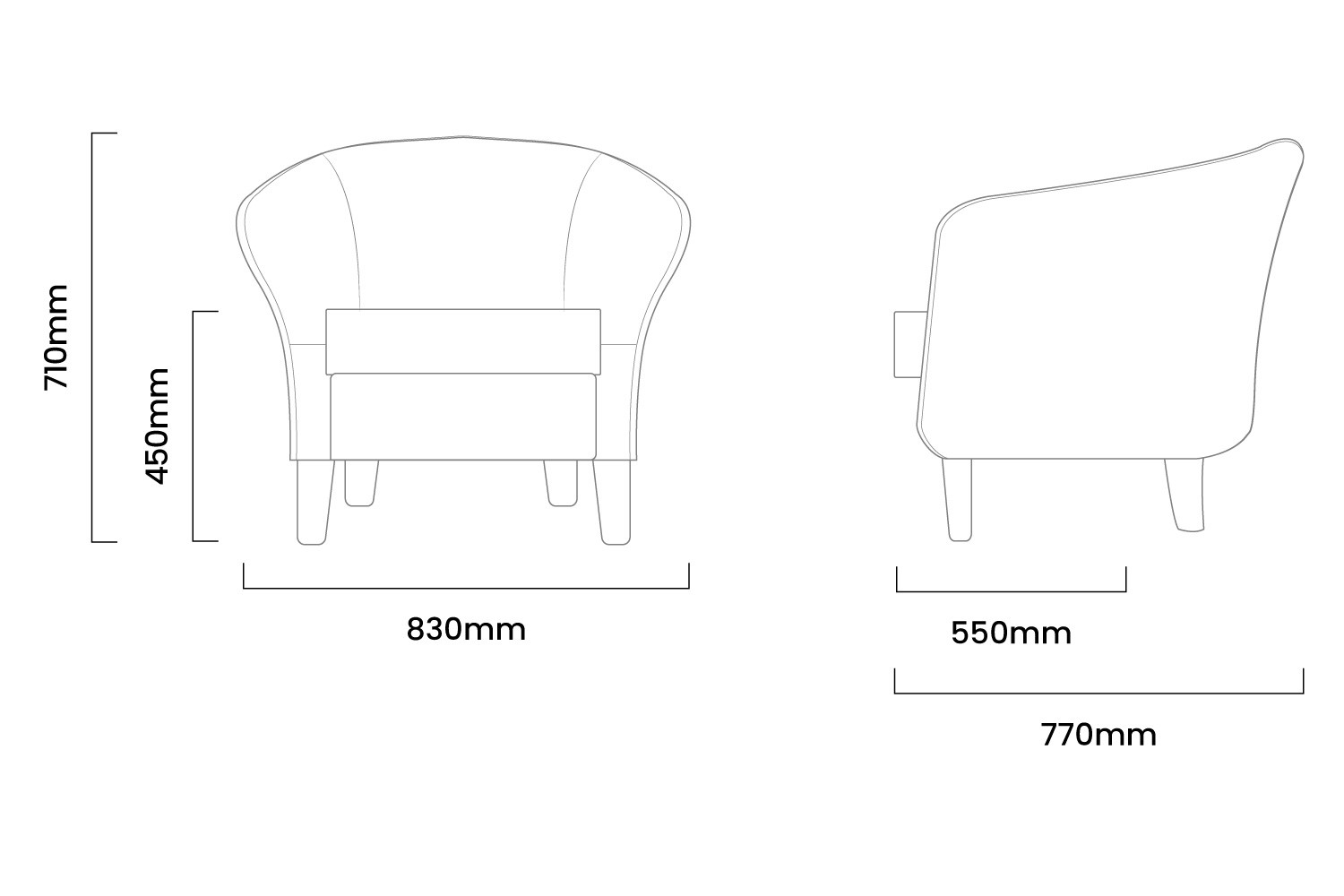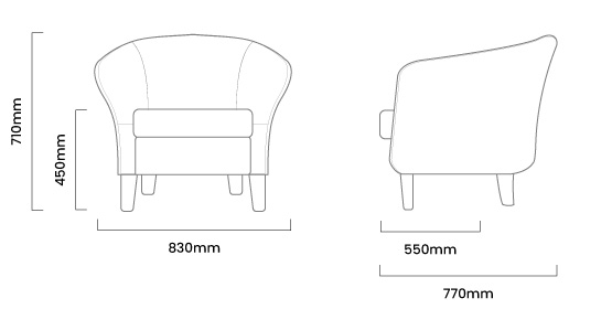830mm (L) x 770mm (W) x 710mm (H) | Seat Height - 450mm | Seat Depth - 550mm