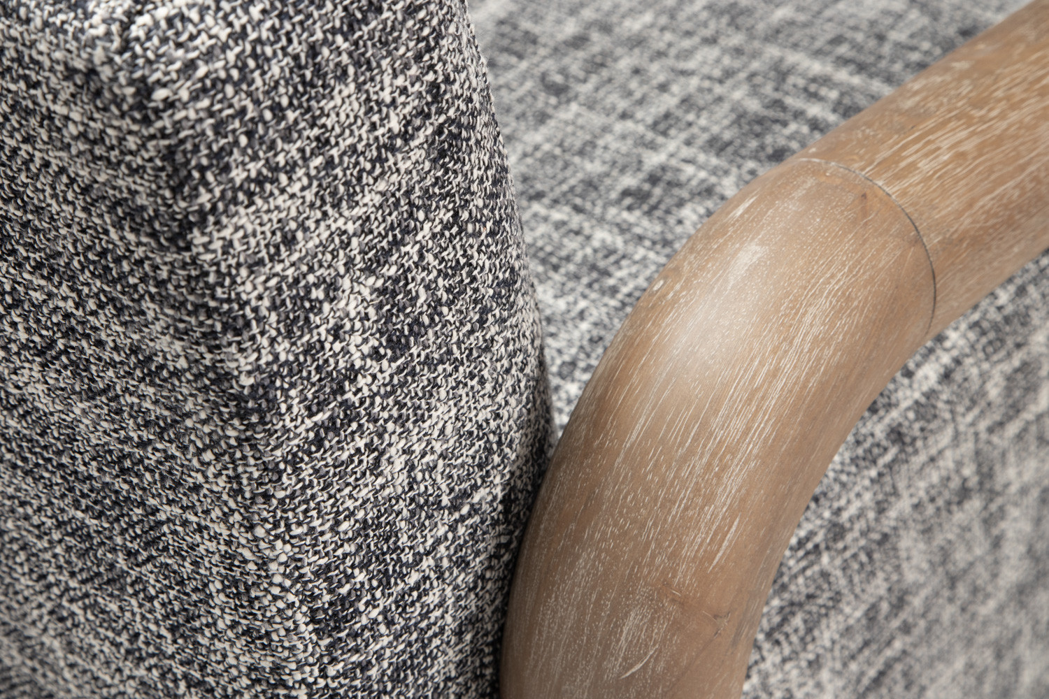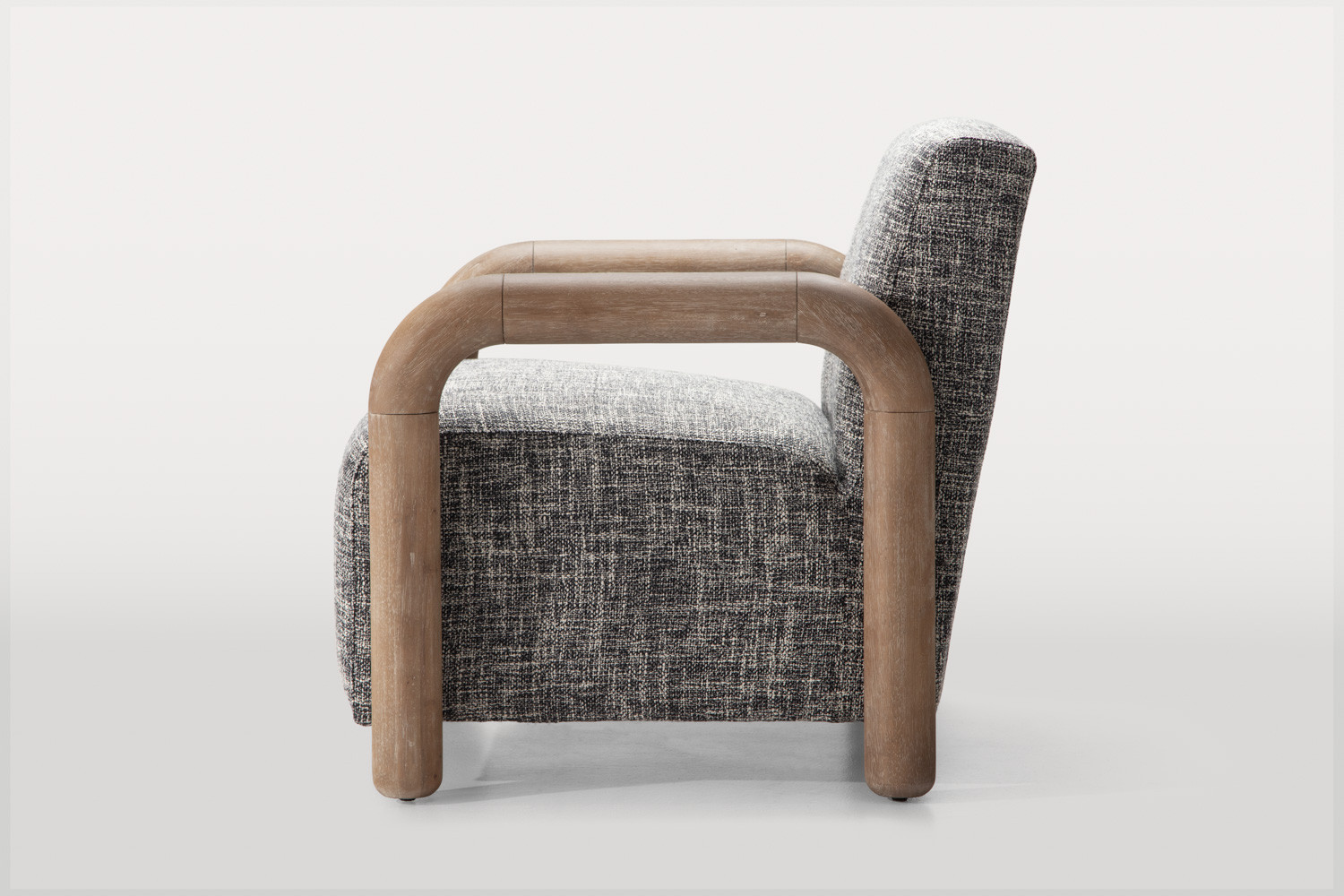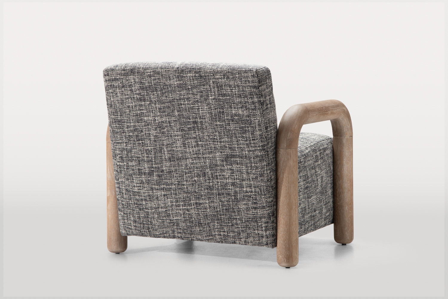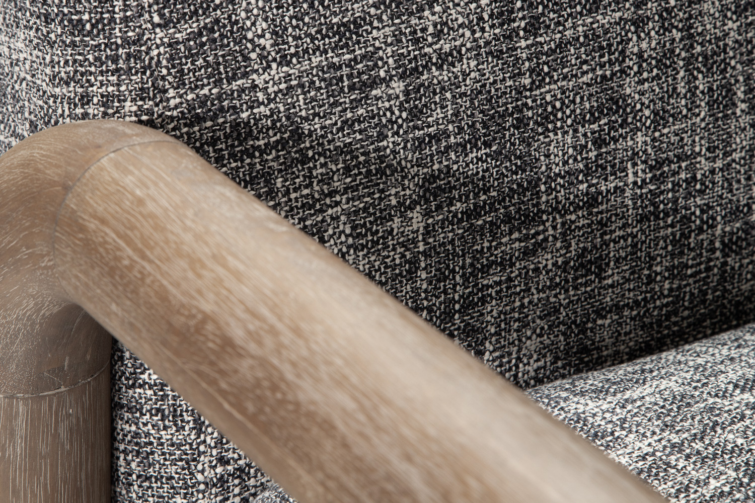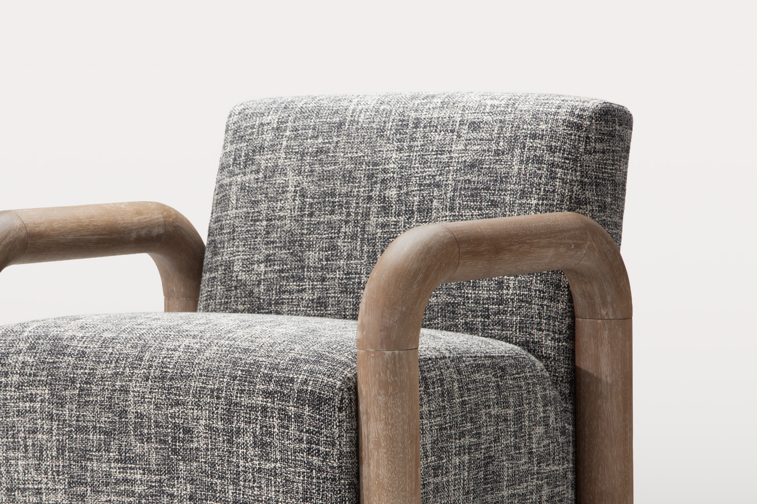 The Tauvora Armchair is designed to make an immediate impression. Its unique proportions catch the eye as its oversized armrests cradle the seat and extend to the floor with expressive style. The chic charcoal shade of the cushioning contrasts perfectly with the wood tone of the armrests, resulting in a piece that shines with contemporary character.