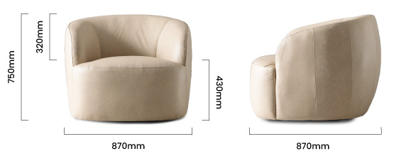 The Tayson Leather Swivel Armchair is an undeniable statement piece. With its clean, rounded design, it introduces a soft yet striking presence to your living room. Crafted from full-grain leather, this armchair not only provides a luxurious texture but also promises to age gracefully, developing a unique patina over time. The leather finish adds a rich depth to your space, offering a versatile ivory colour that complements a variety of interior styles.