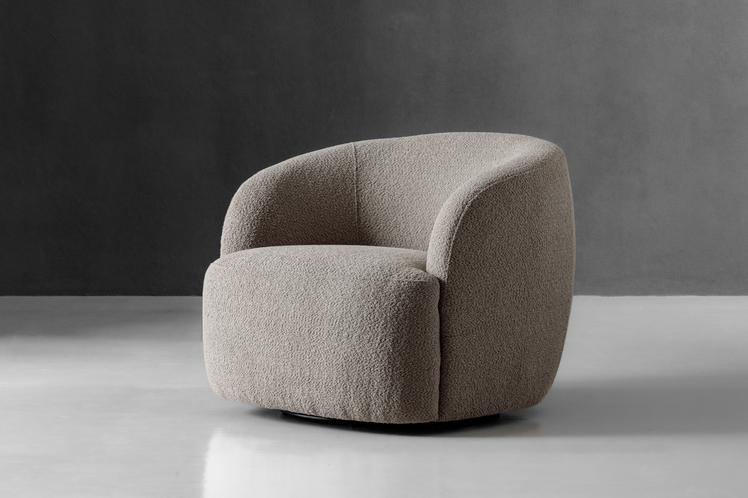 The Tayson Swivel Armchair is an undeniable statement piece. With its clean, rounded design, it introduces a soft yet striking presence to your living room. Crafted from plush fabric, this armchair not only provides a luxurious texture but also promises to age gracefully, developing a unique patina over time. The plush finish adds a rich depth to your space, offering a versatile stone colour that complements a variety of interior styles.