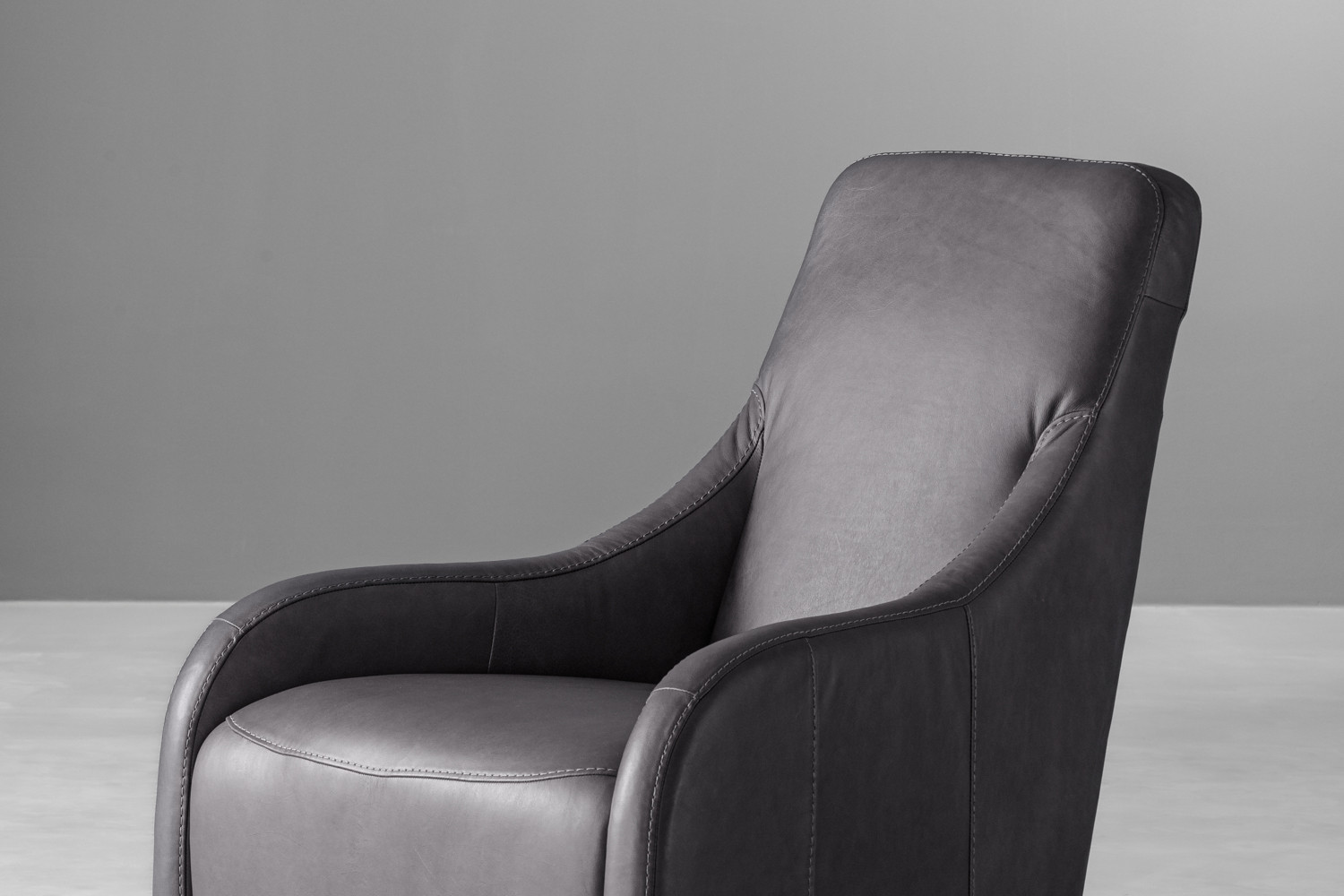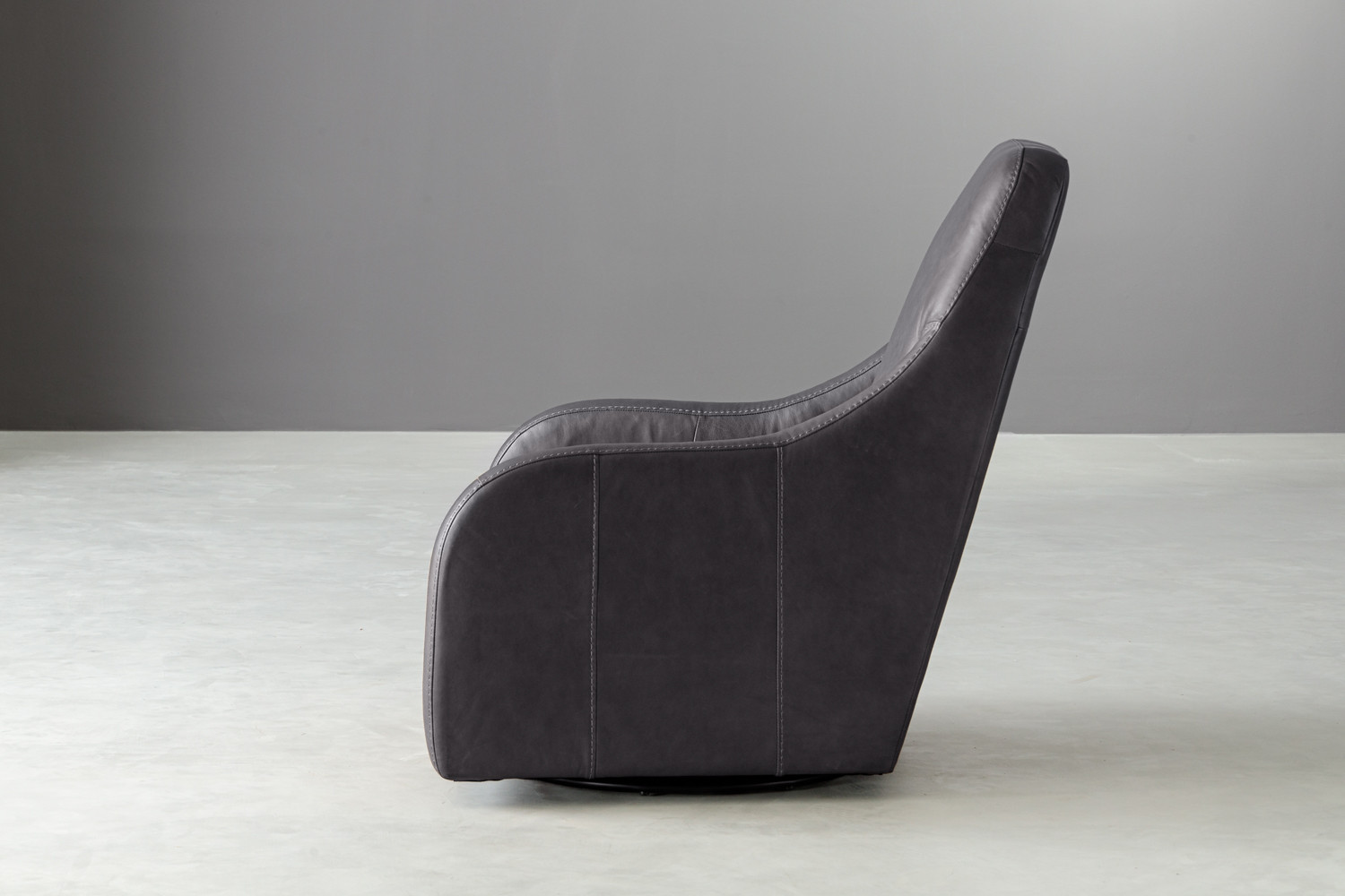 Ergonomic and incredibly alluring, the Vesper Leather Swivel Armchair leaves an undeniably good impression. Lose yourself in its many charms as you sink back into sumptuous full-grain leather. From the elongated curve of the armrests to the relaxing swivel action of the base, this chair is a celebration of contemporary style.