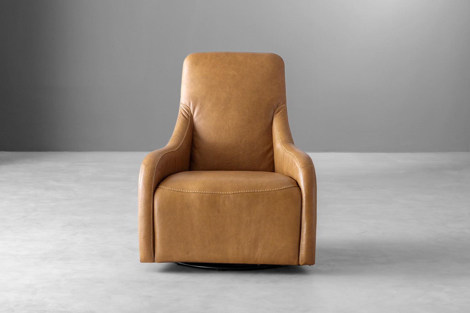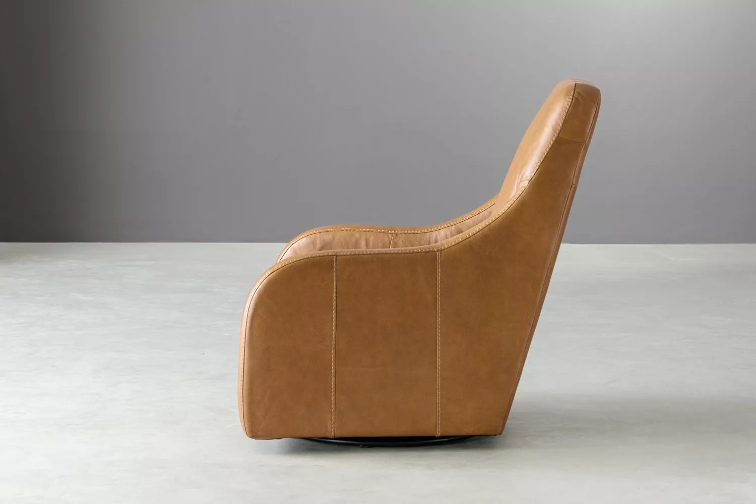 Ergonomic and incredibly alluring, the Vesper Leather Swivel Armchair leaves an undeniably good impression. Lose yourself in its many charms as you sink back into sumptuous full-grain leather. From the elongated curve of the armrests to the relaxing swivel action of the base, this chair is a celebration of contemporary style.
