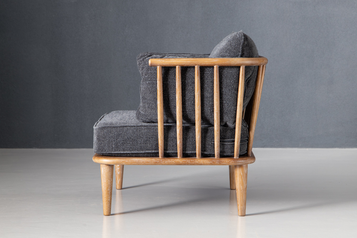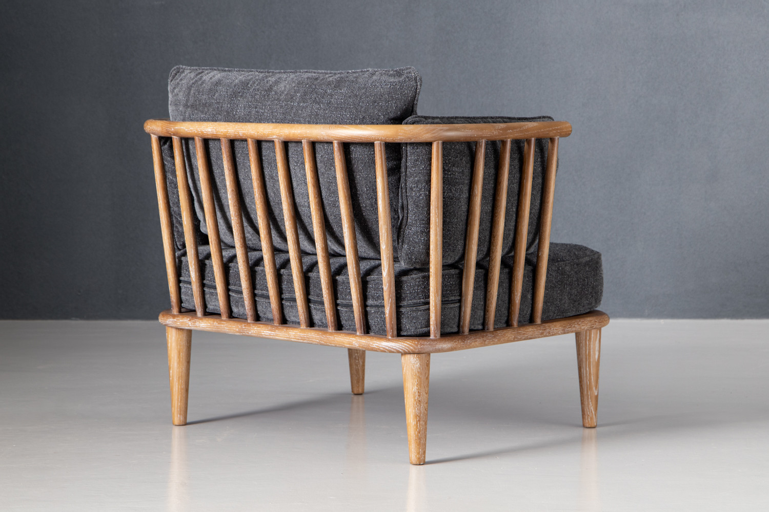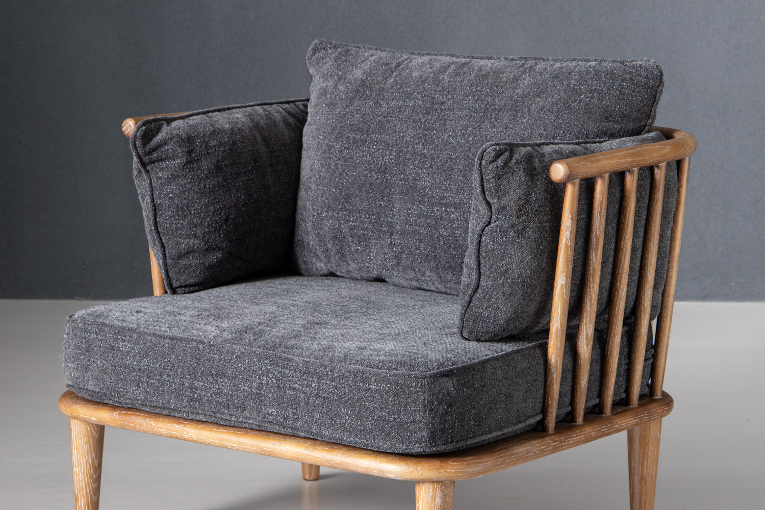 The Vesta Boucle Armchair is a beautiful blend of mid-century design and modern comfort, making it the ideal statement piece for any contemporary living room. This armchair features a solid ash wood spindle frame, offering both strength and visual appeal. The natural warmth of the ash wood complements the textured boucle fabric cushions, creating a harmonious blend of materials that elevate your home’s interior.