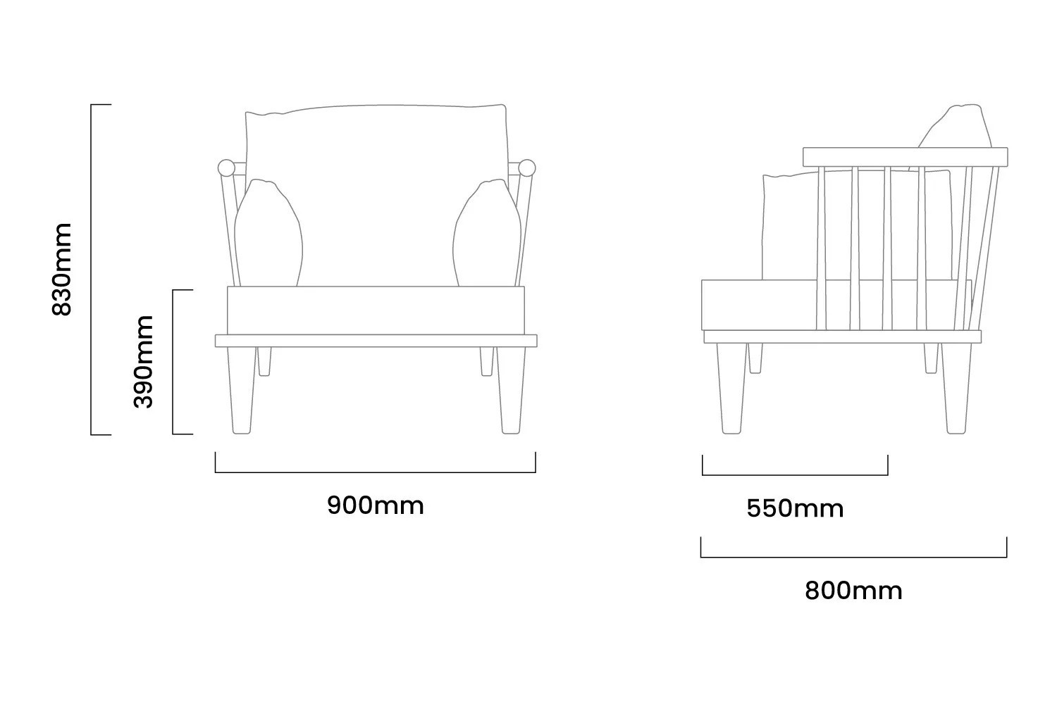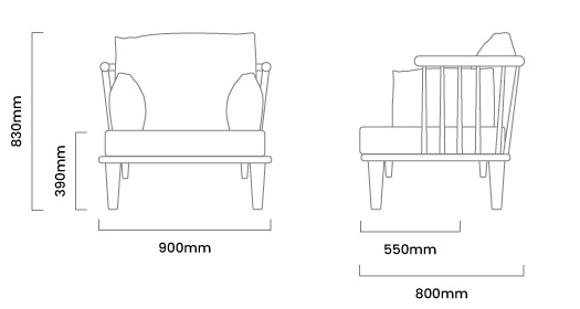900mm (L) x 800mm (W) x 830mm (H) | Seat Height - 390mm | Seat Depth - 550mm