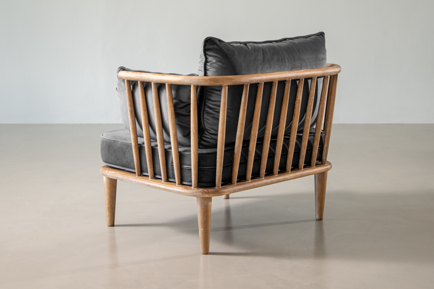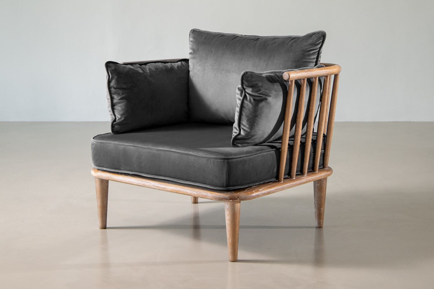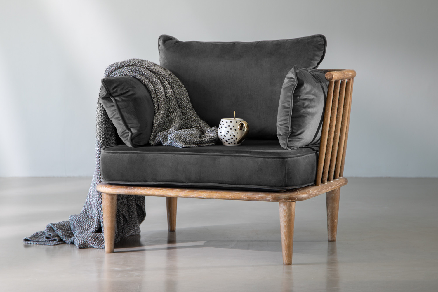 This armchair’s design is inspired by the clean lines and minimalist charm of mid-century modern furniture. The spindle frame detail on the ash wood adds a touch of architectural interest, giving the chair a distinctive silhouette that stands out in any living space. Whether you’re placing it in a cosy corner of your living room or using it as a centrepiece in your home office, the Vesta Velvet Armchair offers the perfect blend of form and function.