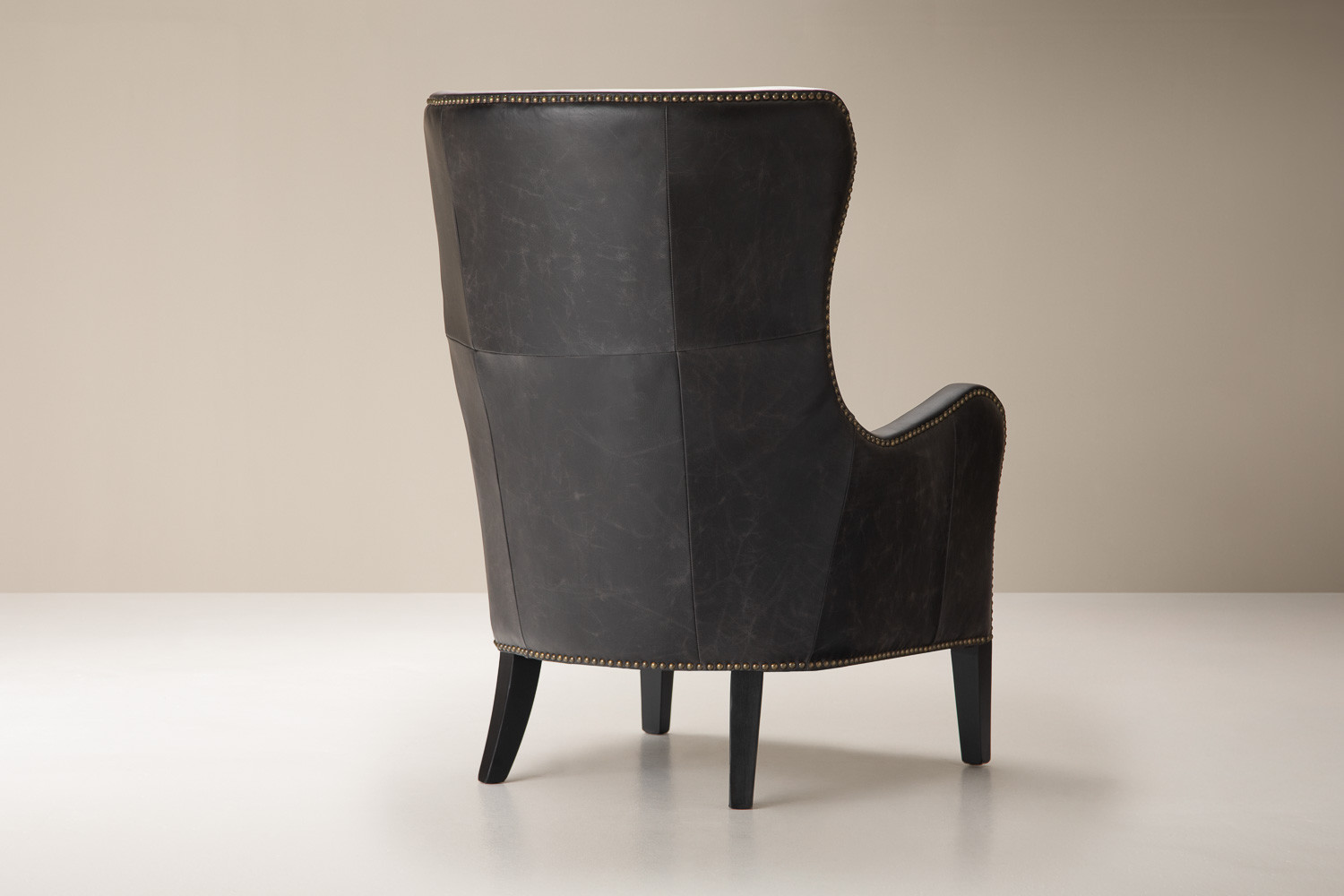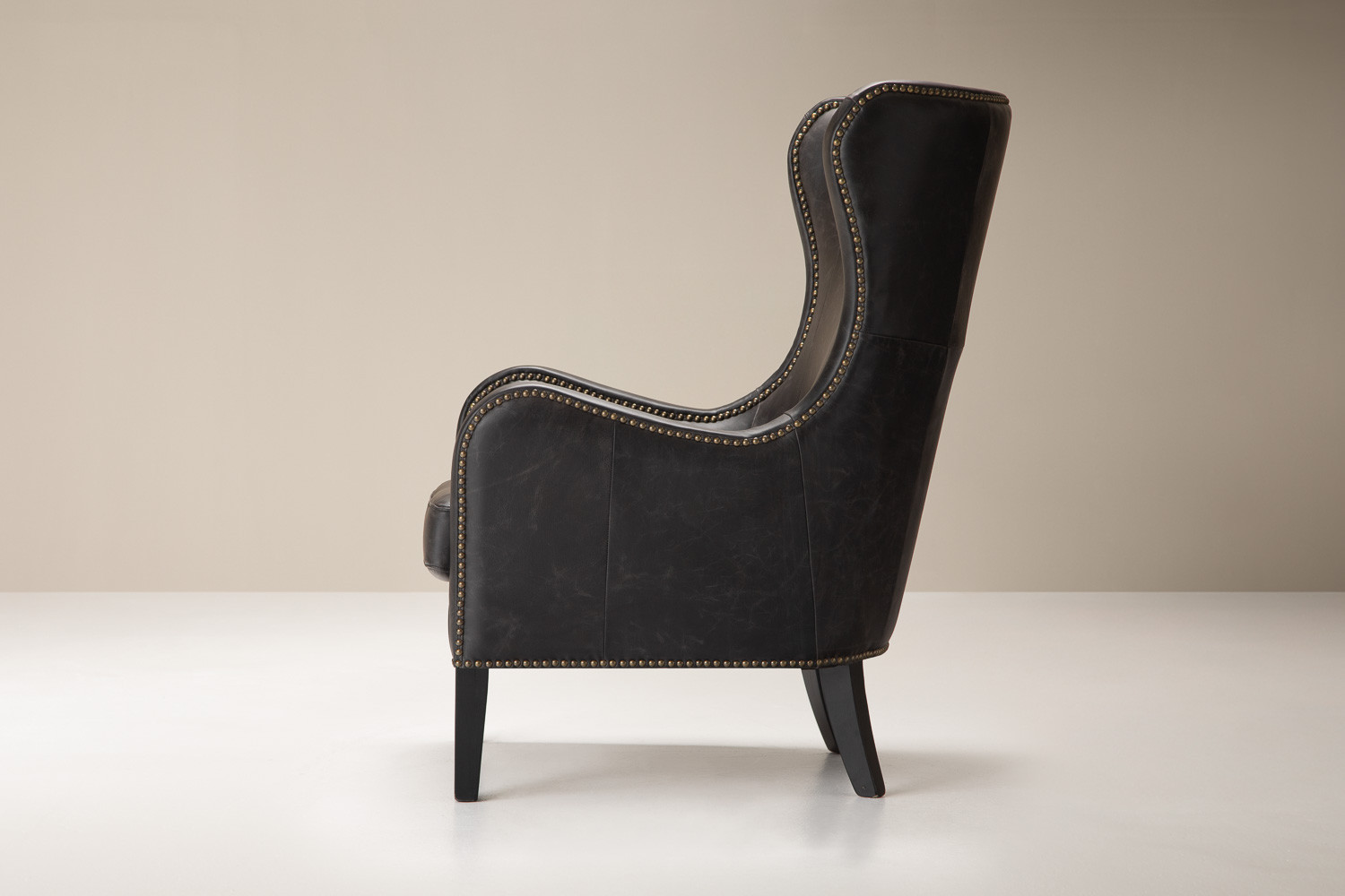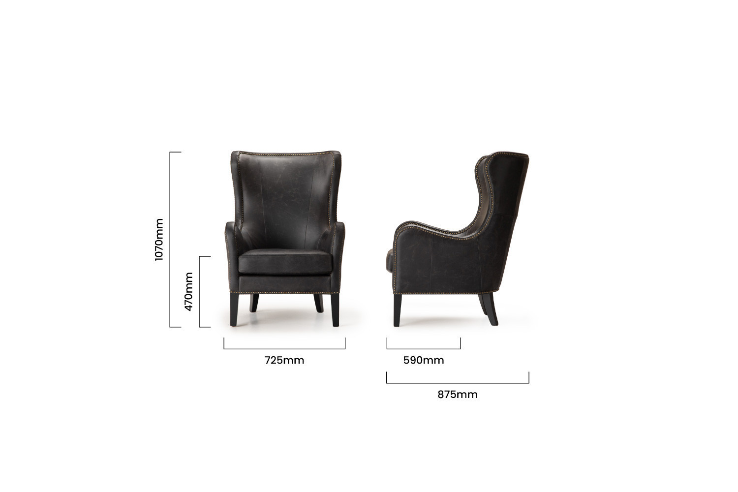 Your throne has arrived. Step into the world of refined comfort with the Wiltshire Leather Armchair, a classic wingback design reimagined with pure class. Draped in rich, dark leather and adorned with antique brass studs, this armchair adds stately presence and enduring charm to any distinguished interior.