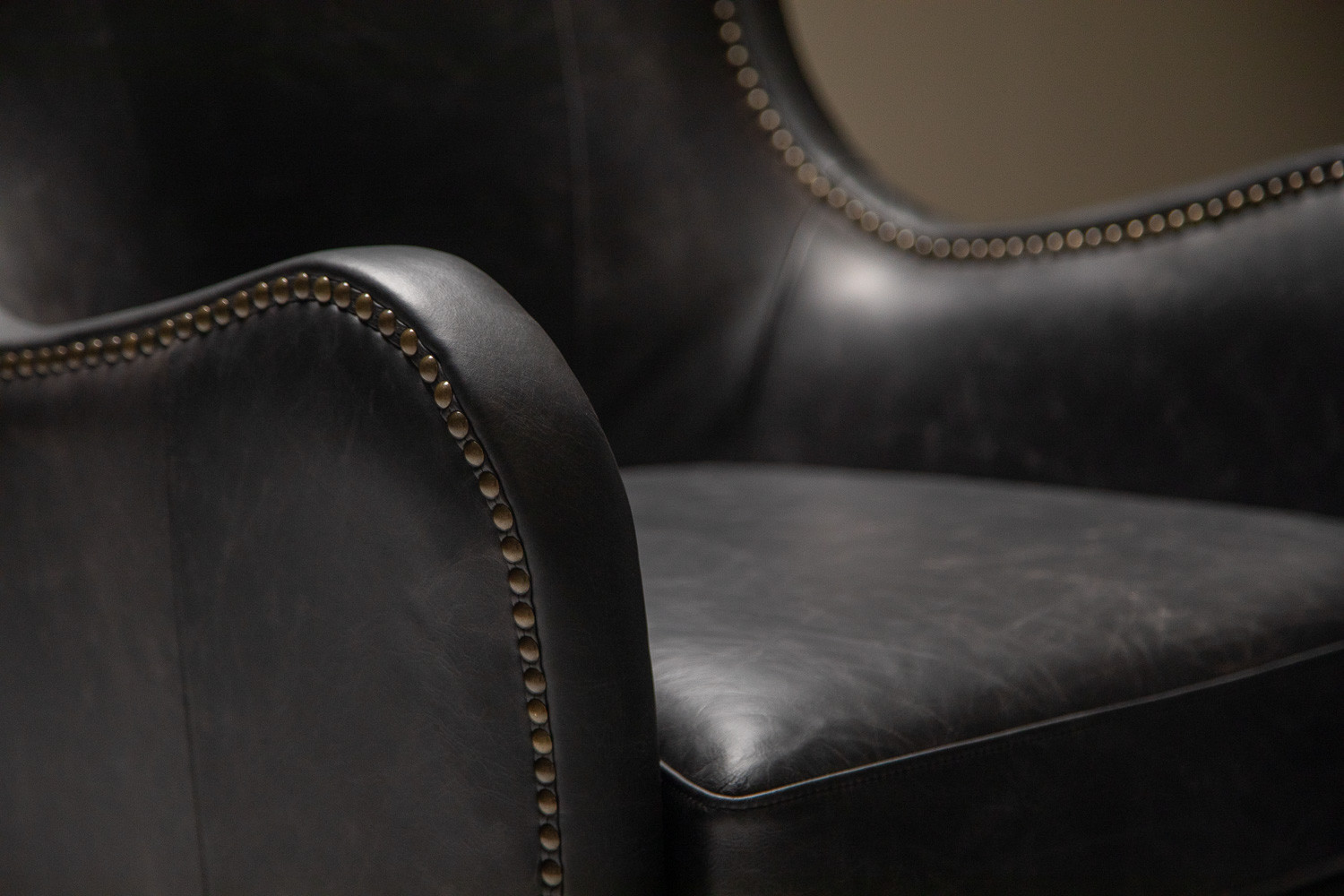 The Wiltshire Leather Armchair is a stunning fusion of traditional craftsmanship and modern comfort. Upholstered in premium full-grain leather, its gently distressed finish gives it strong character, while the high back, curved arms, and plush seat offer a relaxing and supportive retreat. Decorative nailhead trim highlights the chair’s elegant silhouette, making it as much a focal point as it is a haven of comfort.