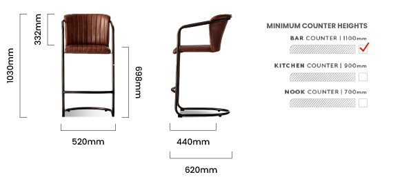 520mm (L) X 620mm (W) X 1030mm (H) | Seat Height - 698mm