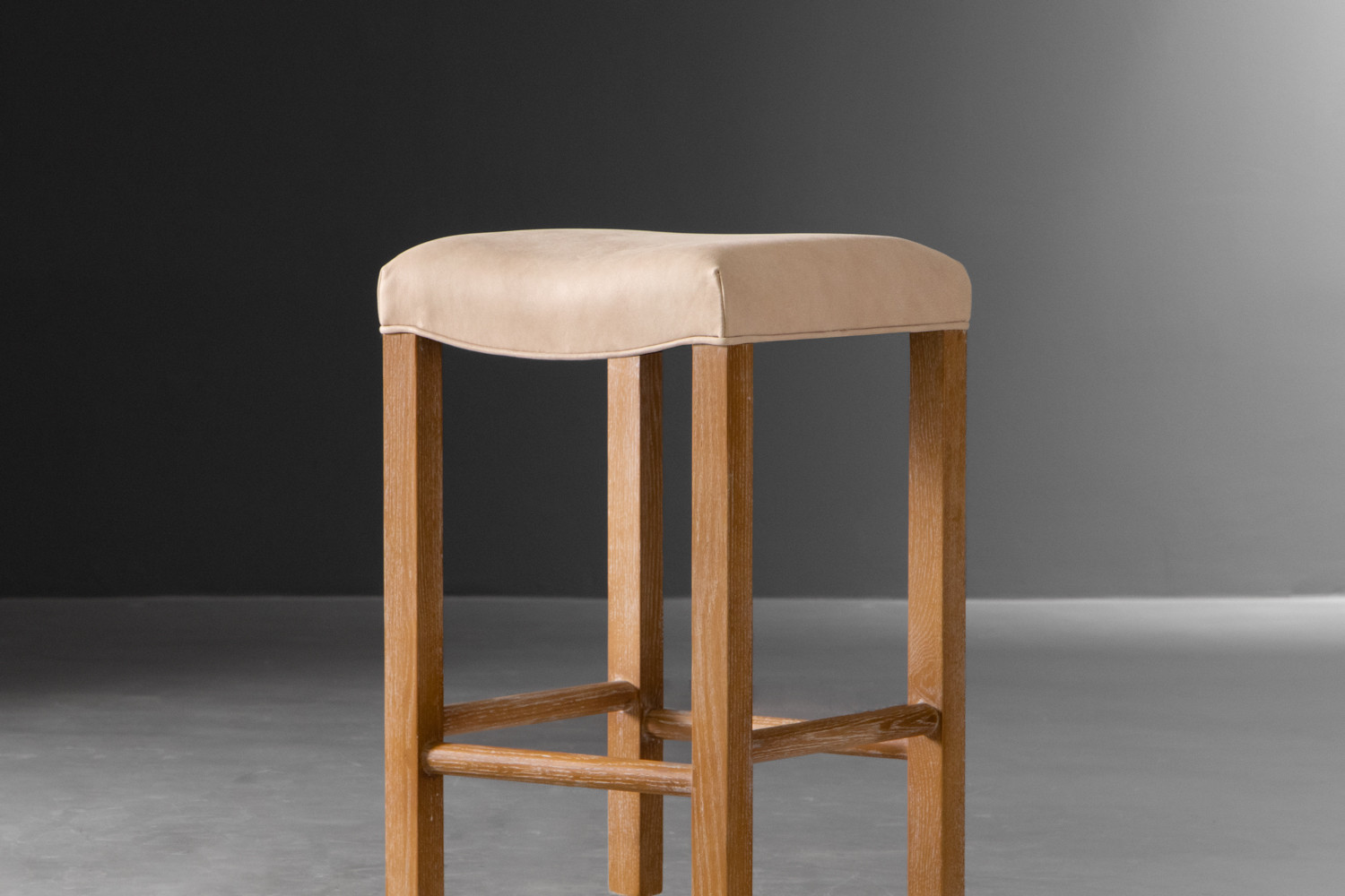 The Carmine Leather Counter Bar Stool is a sophisticated seating option for your kitchen, bar, or entertainment area, combining modern design with traditional comfort. This stool features a solid ash wood frame and a contoured full-grain leather seat in a refined Sandy Taupe colour. The combination of finessed woodcraft and premium materials ensures both durability and style, making it a comfortable and attractive addition to any space. The Carmine Stool's refined presence and ergonomic design make it an excellent choice for those seeking both functionality and elegance.