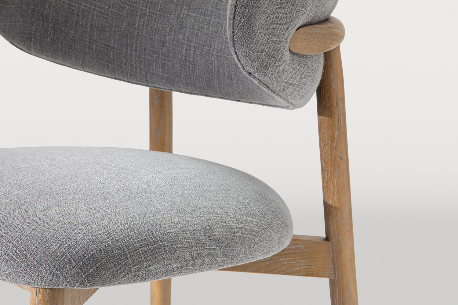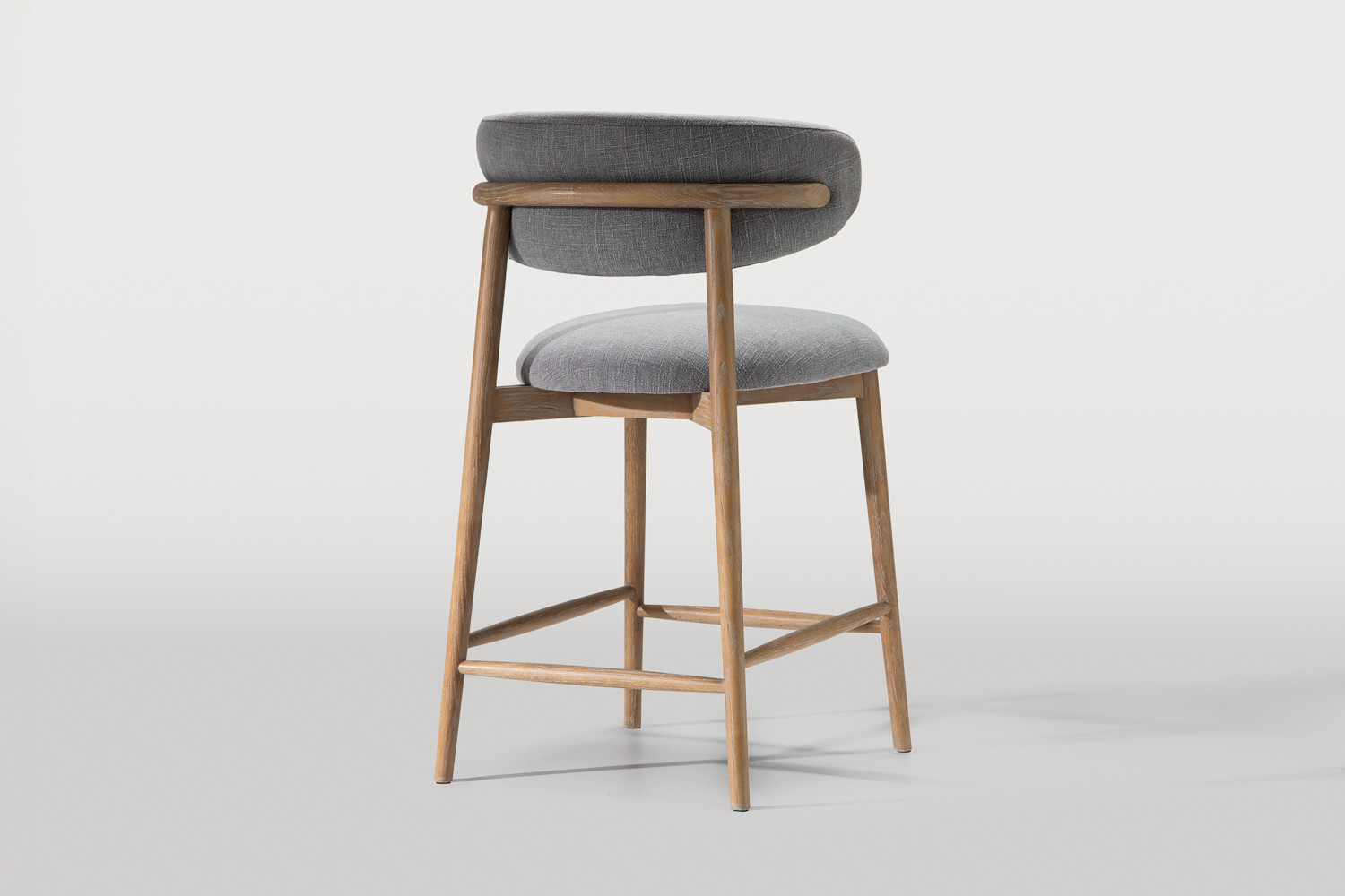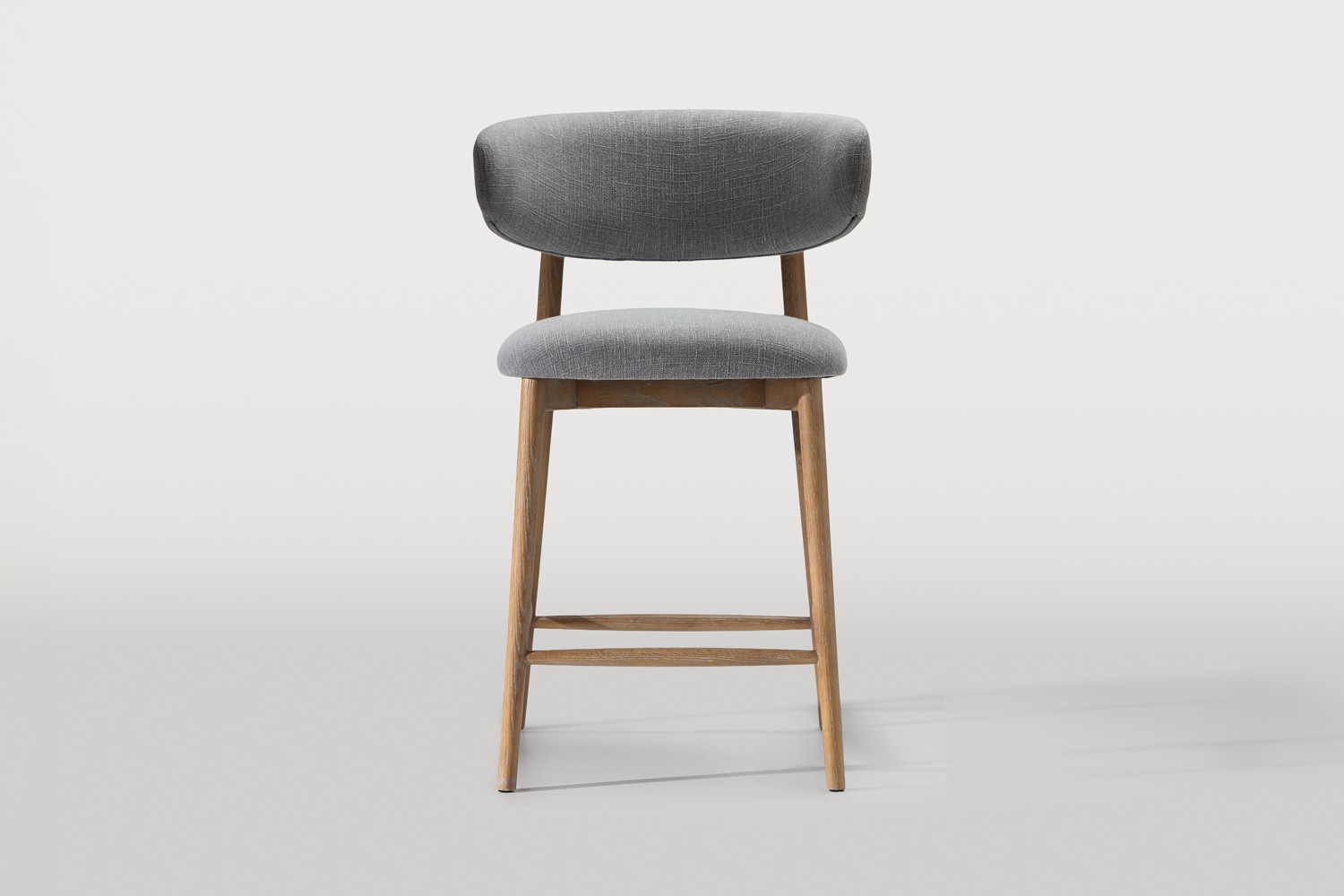 Give your kitchen island or home bar an instant style upgrade with the Mallory Counter Bar Stool. Its gently contoured backrest and generously padded seat encourage everything from quick weekday coffees to leisurely sundowners. Beneath the soft grey upholstery, a solid ash wood frame completes its fetching look. The Mallory invites you to dine or entertain in utmost comfort.