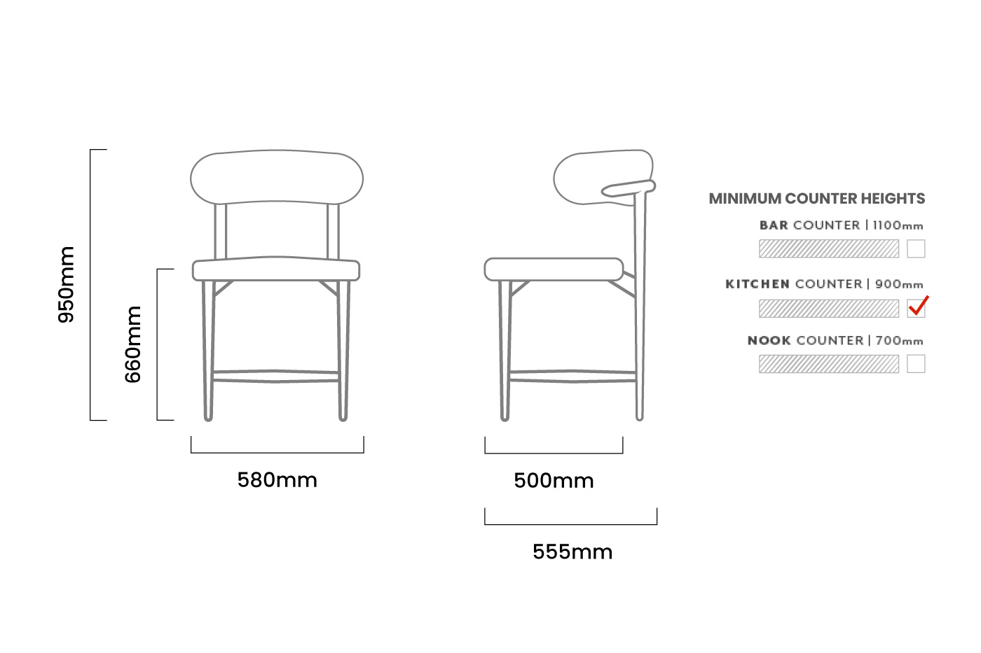 580mm (L) x 555mm (W) x 950mm (H) | Seat Height - 660mm | Seat Depth - 500mm