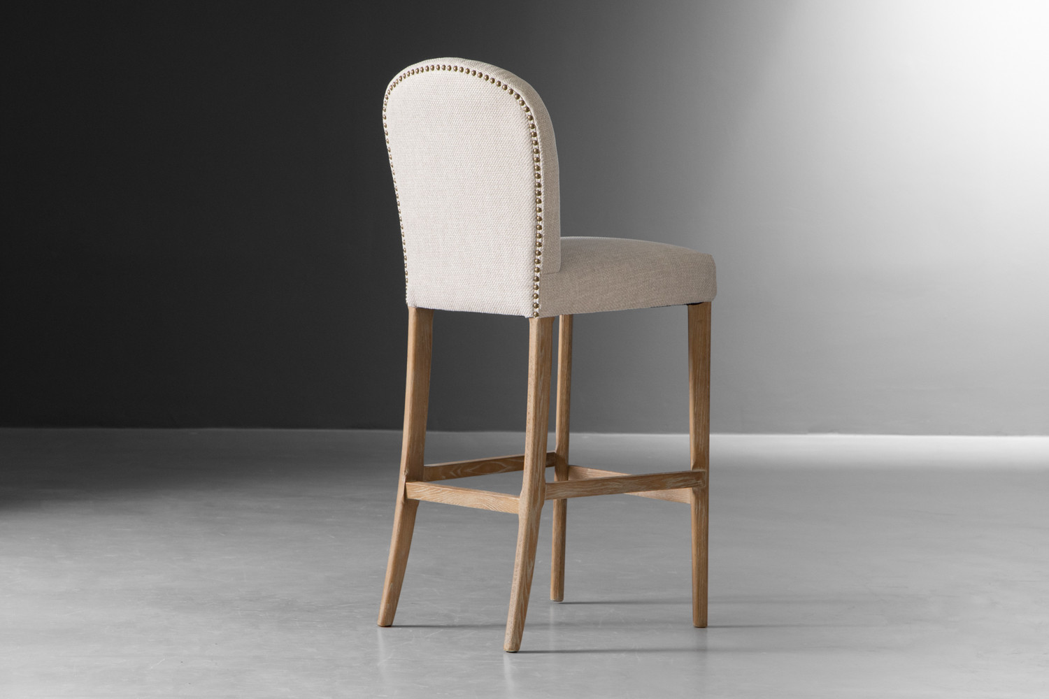 Elevate your bar or entertainment area with the sophisticated Orchilla Tall Bar Stool. Crafted from solid ash wood, this chair combines durability with refined elegance. Its rounded backrest features soft, upholstered cushioning in a timeless Winter Taupe finish, making it as comfortable as it is stylish. The studded detailing along the back adds a touch of classic charm, while the plush seat ensures long-lasting comfort for your guests.