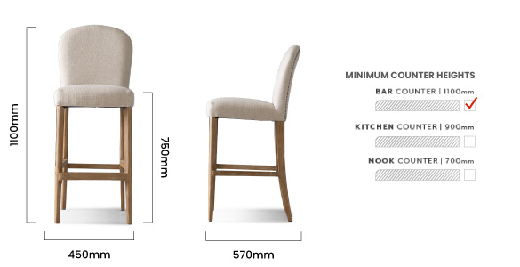 450mm (L) x 570mm (W) x 1100mm (H) | Seat Height - 750mm