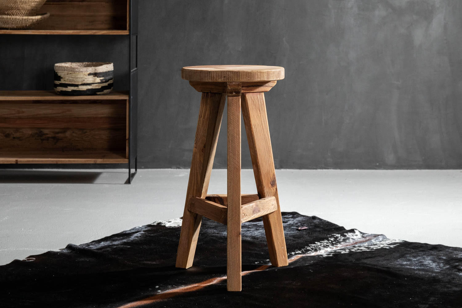 The Rival Counter Bar Stool is crafted from solid natural wood, built for sustainability and durability. This bar chair is masterfully crafted from reclaimed pine, introducing a warm tone and rustic finish to your living space. The authentic workmanship introduces a refreshing organic feel.