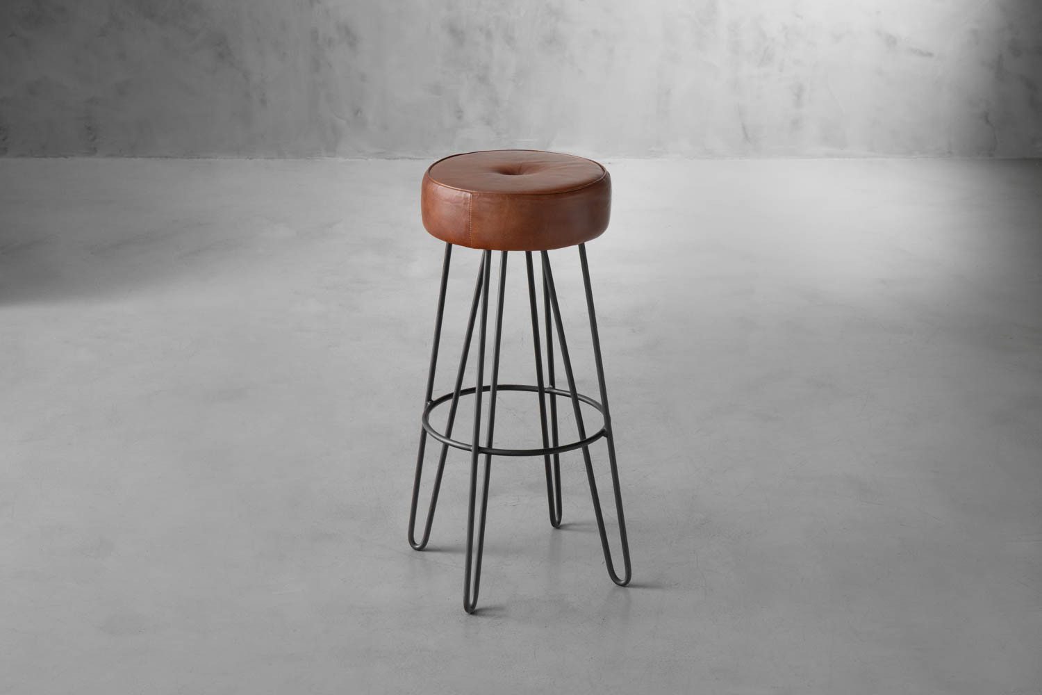 The Willis stool, with its smooth leather and sleek iron, is perfect for high kitchen counters or your home bar space. It melds functionality with artful design to complement any decor.