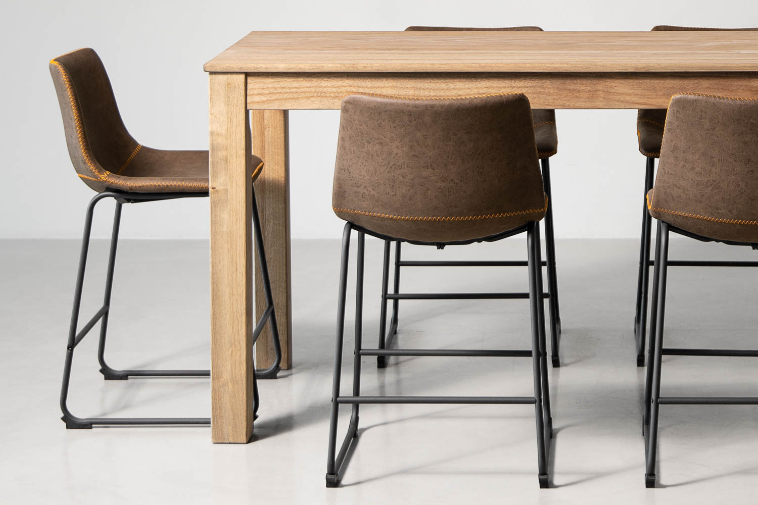 The Belmont Bar Table boasts a durable solid wood design that will draw your family and guests in with its warm laid-back feel while the Halo Counter Bar Chair offers a laid-back class with a versatile contemporary look. Vintage style high-quality microfibre with exposed contrast stitching adds to its unique appeal. Comfortable back support and sturdy steel support with built-in footrest ensure a stable, supportive, and durable bar chair—the perfect addition to any living, dining, or entertainment area.