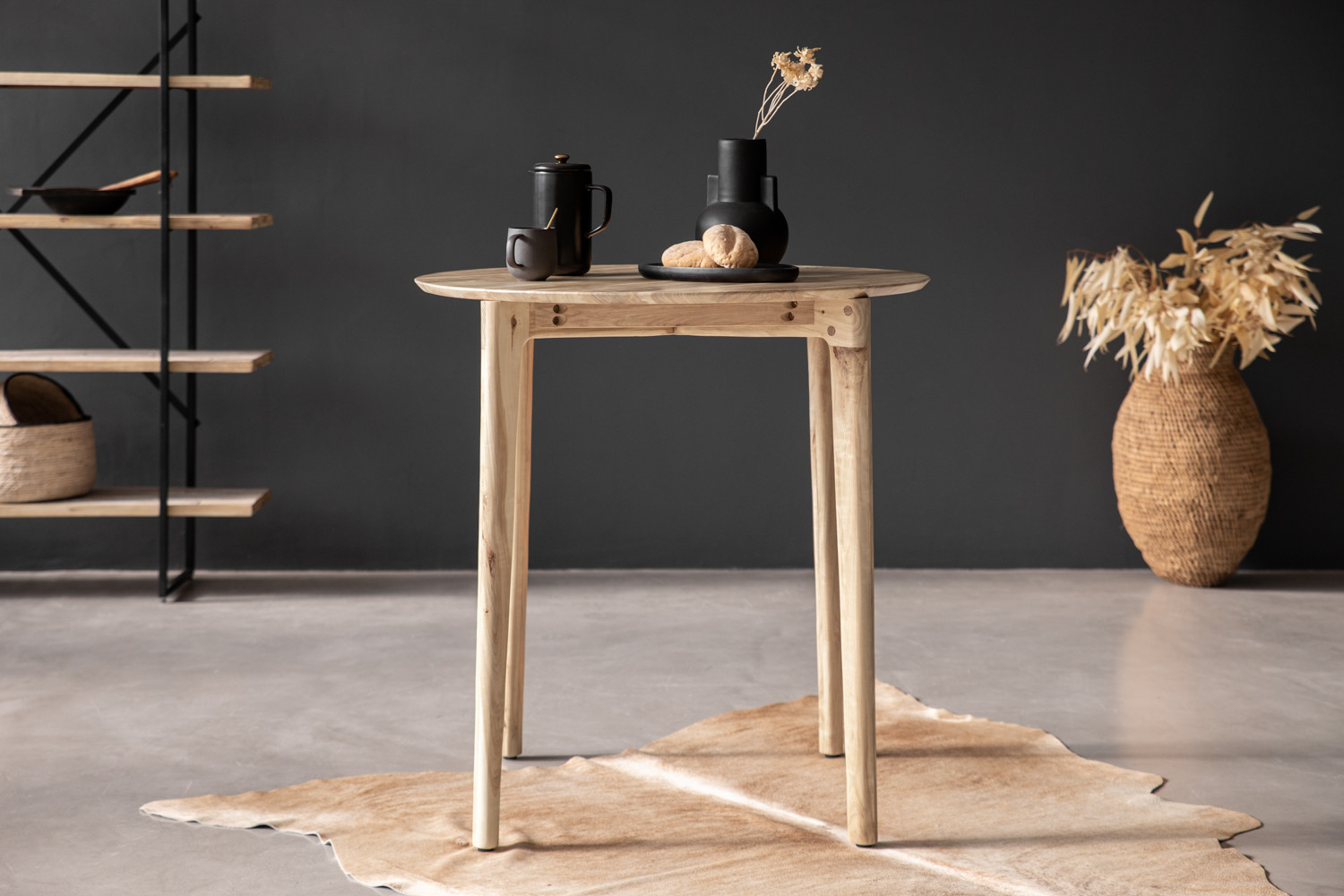 The Satara Round Bar Table welcomes a consciously crafted addition to your bar or entertainment space. This bar table features a solid cottonwood build with a distinctive clean finish.